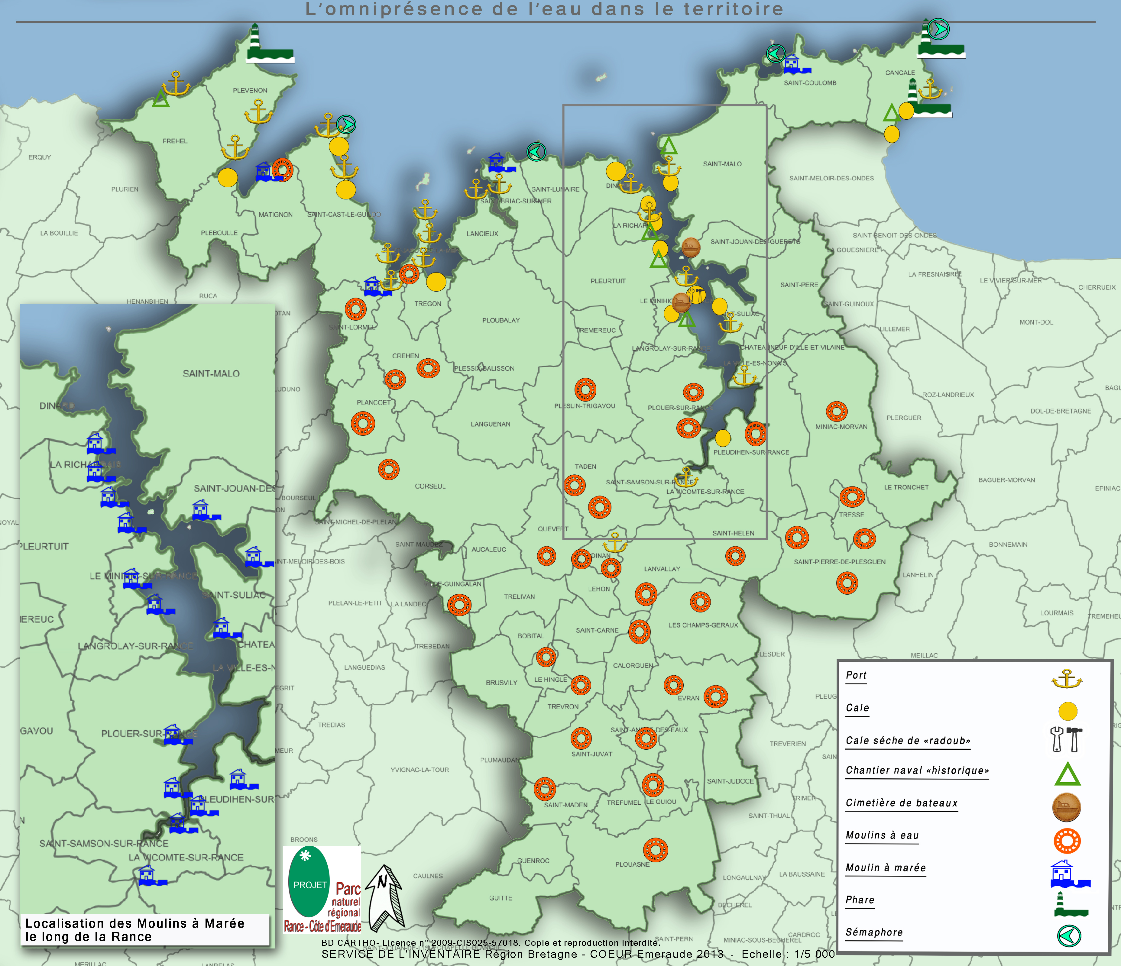 L'omniprésence de l'eau sur le territoire, les moulins à eau et à marée, Service de l'Inventaire du Patrimoine Culturel, Coeur Emeraude; Carte réalisée à partir des dossiers de l'inventaire, septembre 2013 (en cours)Immatriculation