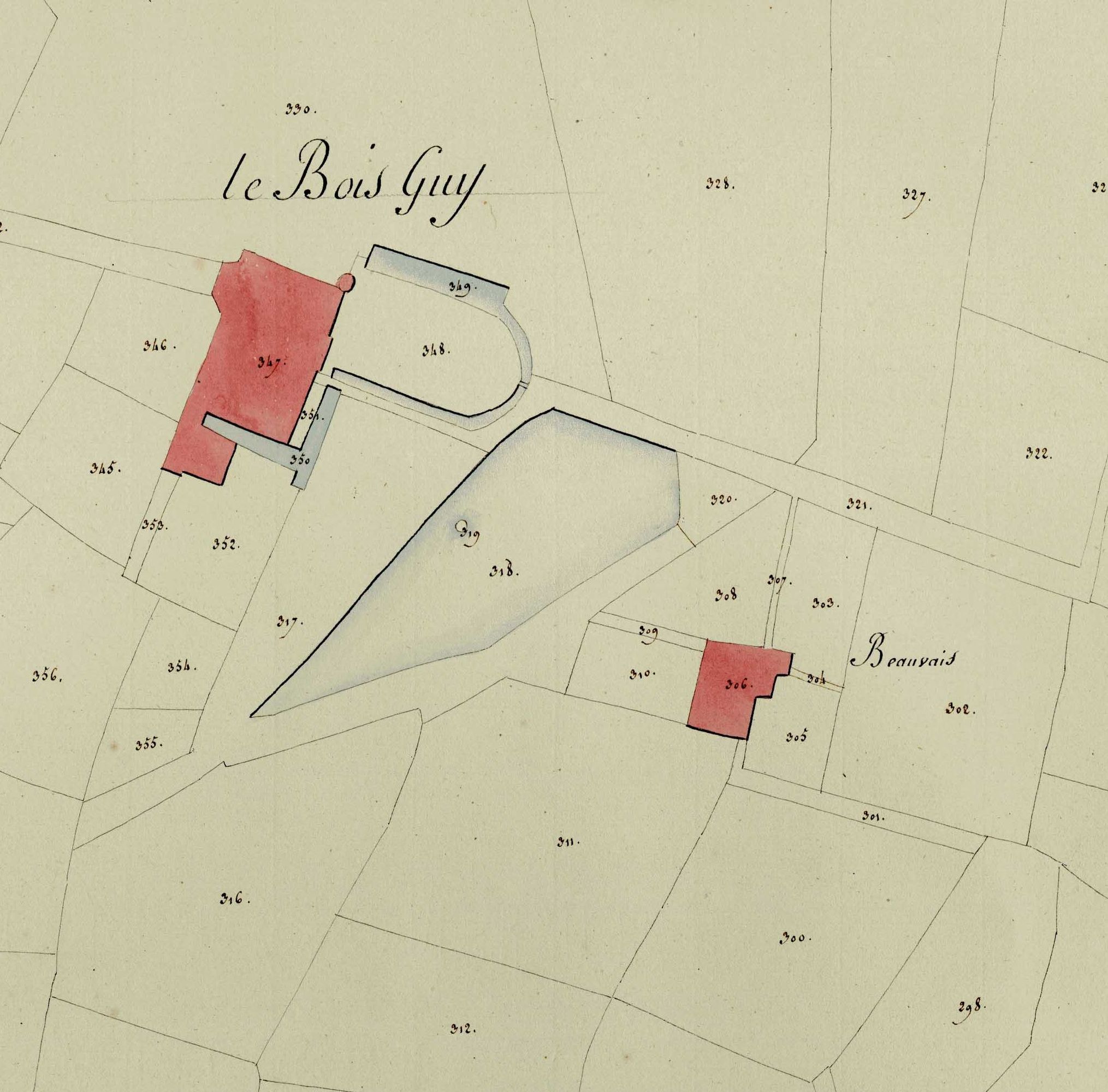 Le château du Bois Guy sur le cadastre napoléonien de 1811Immatriculation