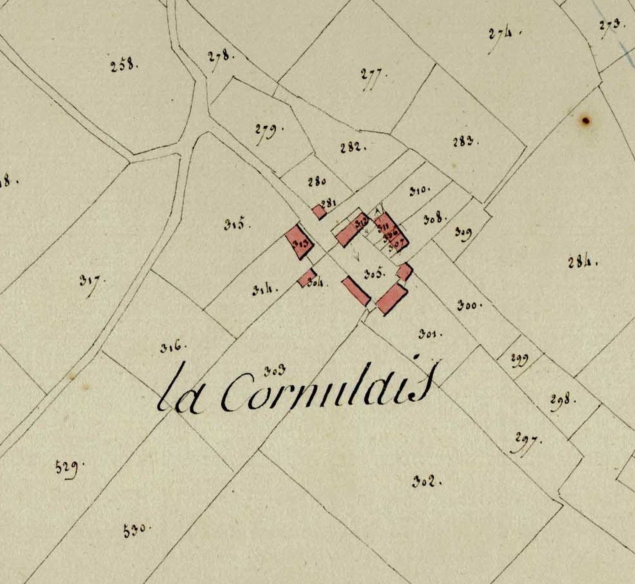 La Cornulais sur le cadastre napoléonienImmatriculation