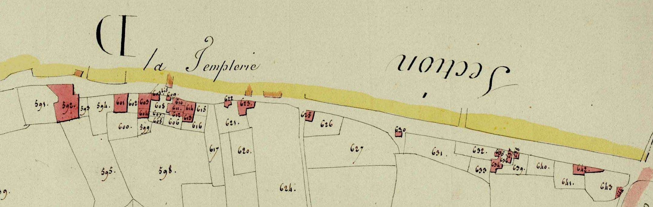 Extrait du cadastre de 1811 : partie Sud du villageImmatriculation