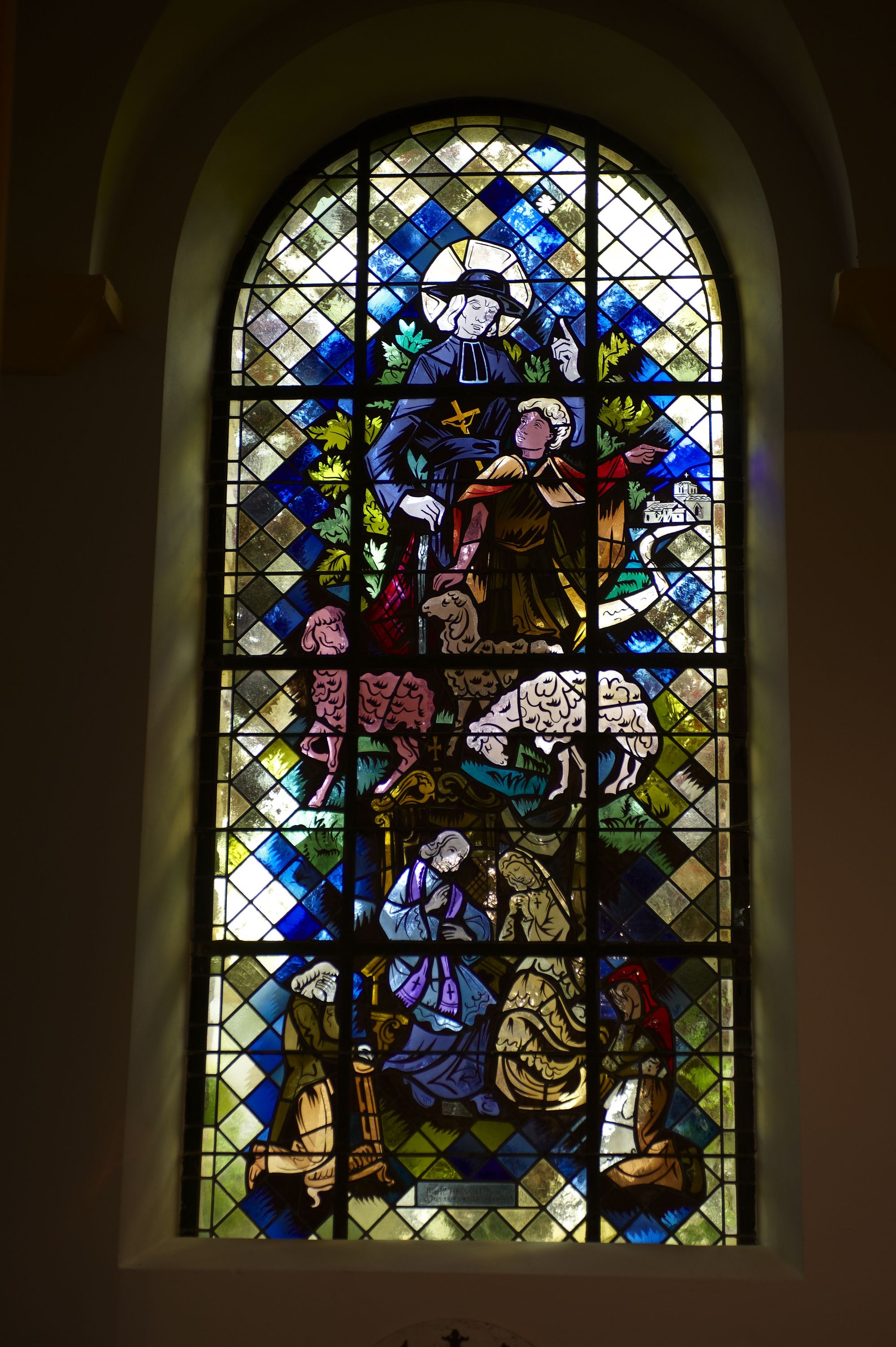 Verrière de la baie 1 : Saint Curé d'Ars (état en 2013)Immatriculation