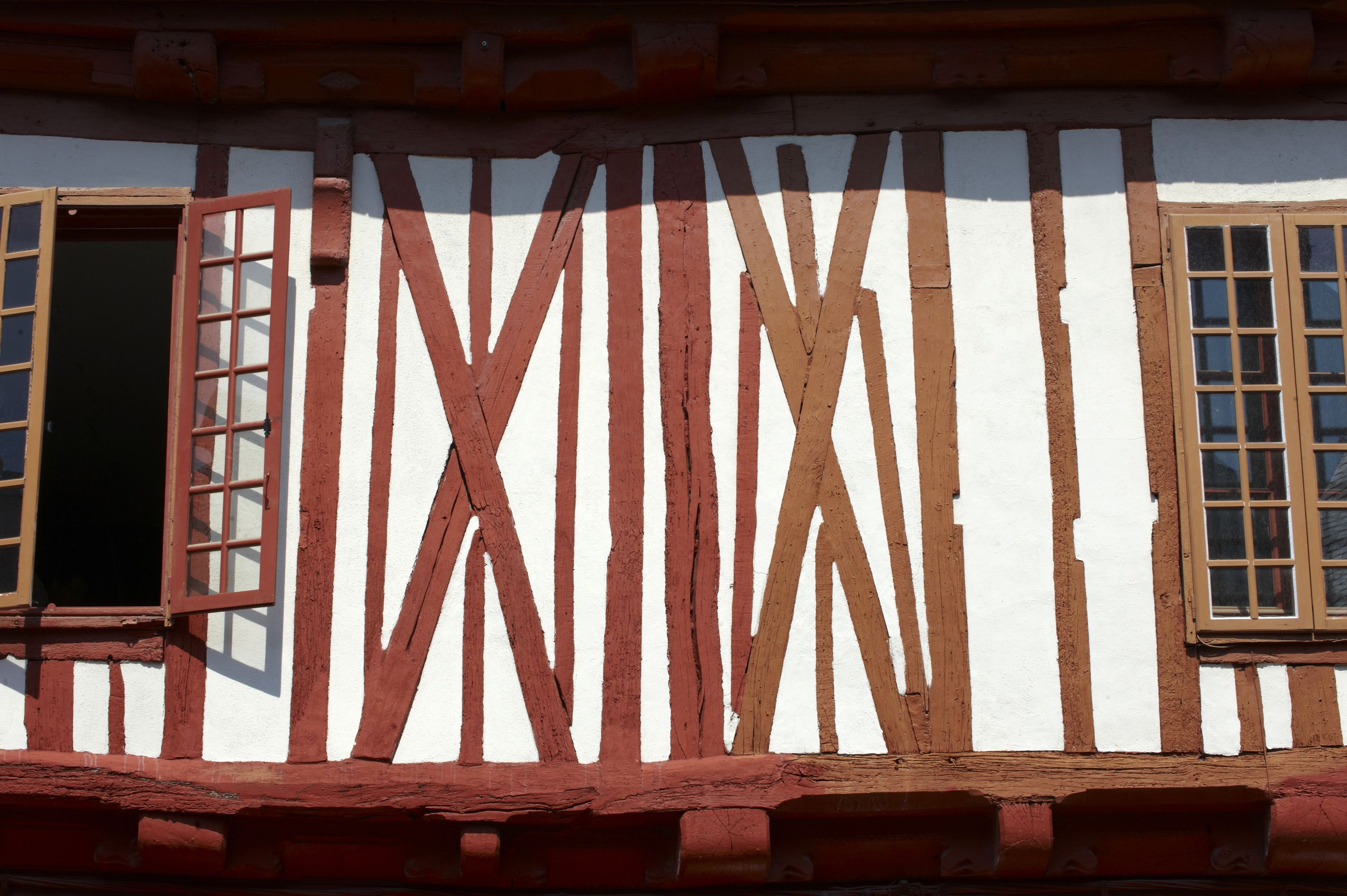Façade ouest, premier étage : détail du pan de boisImmatriculation