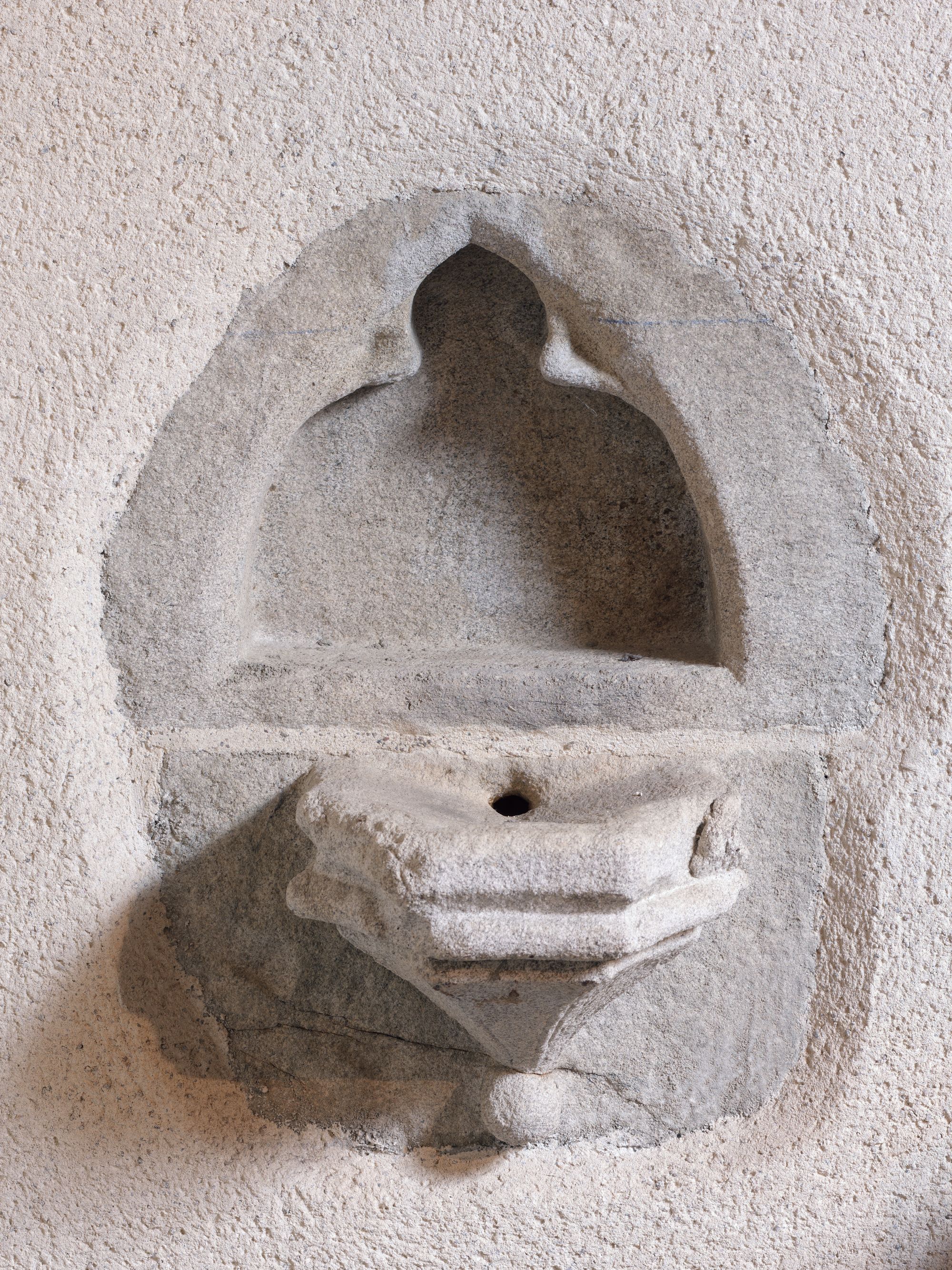 Chapelle, bras sud du transept, mur sud : niche-lavabo (état en 2013)Immatriculation