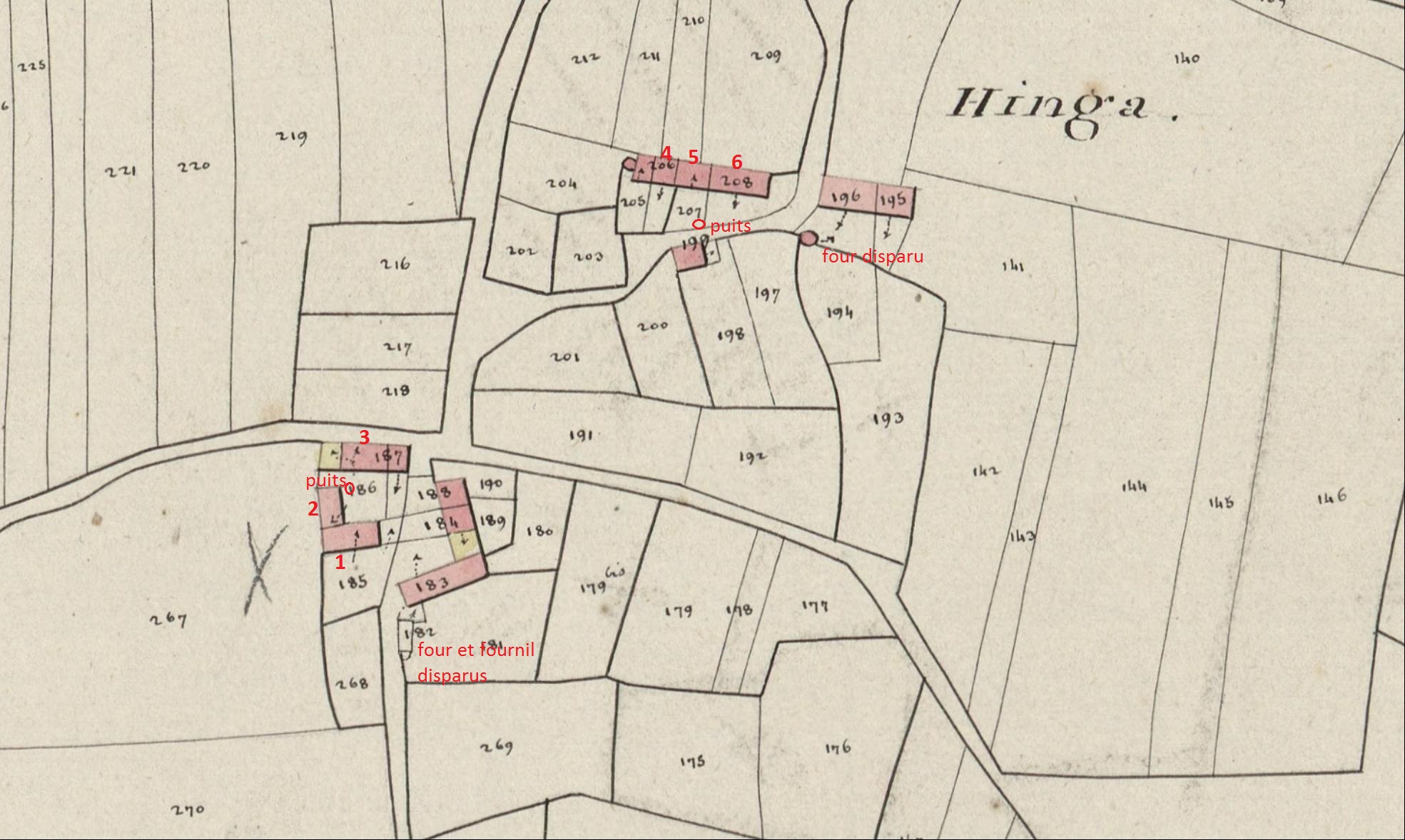 L'écart de Hinga sur le cadastre de 1825 (A. D. du Morbihan, 3P 269/5)Immatriculation