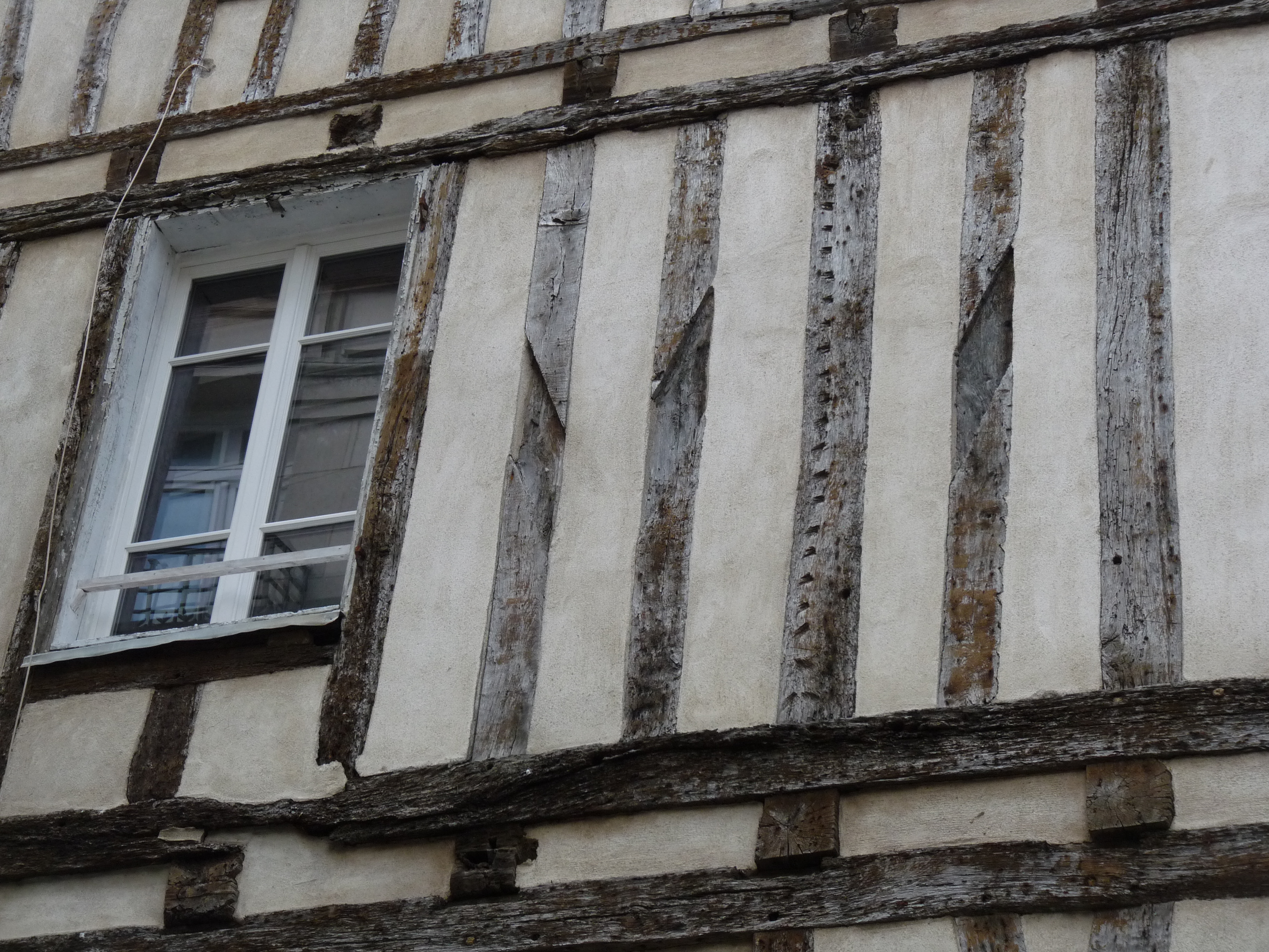 Maison rue des Orfèvres, façade sud, détail pan de boisImmatriculation
