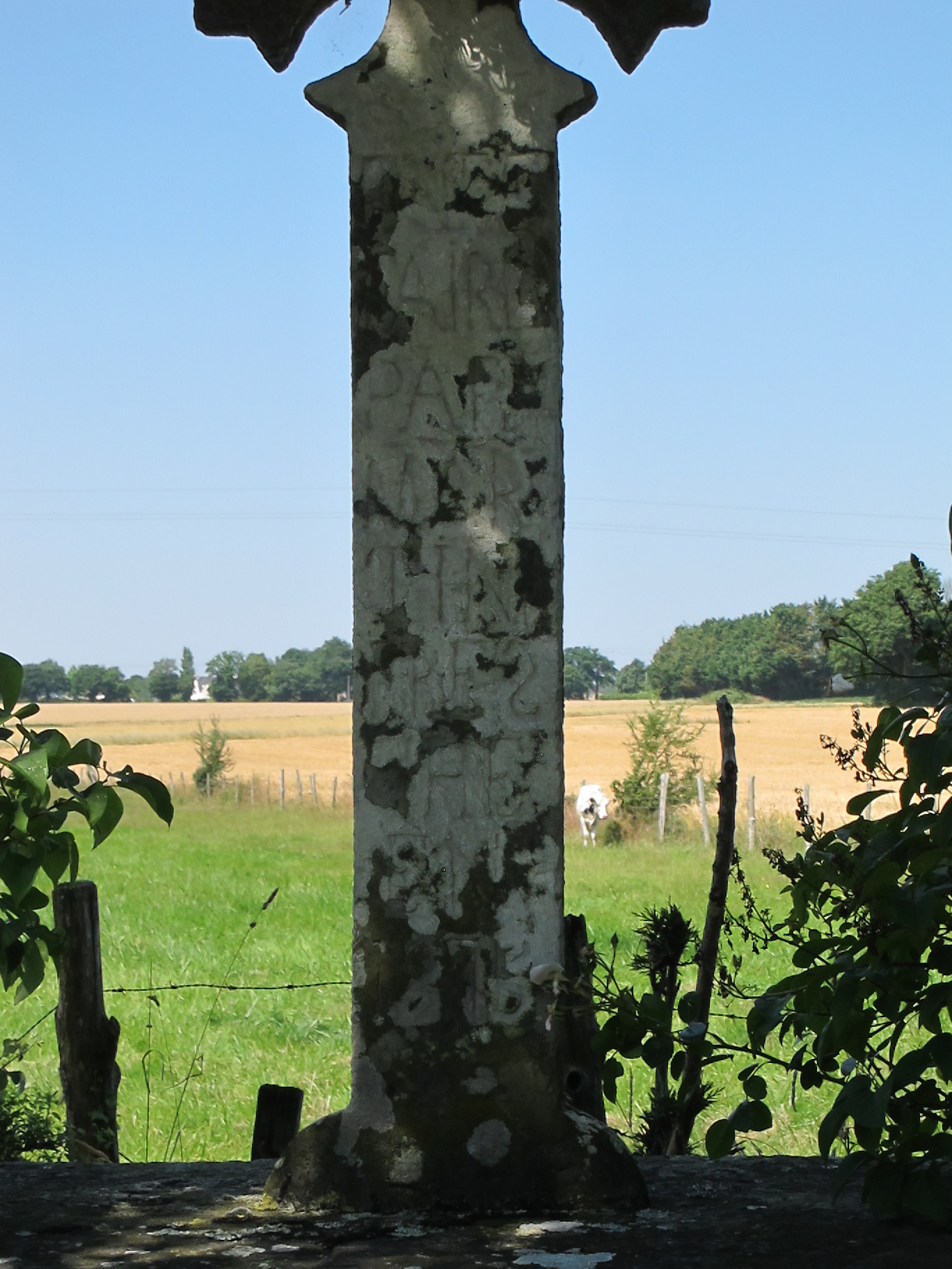 Croix de chemin : inscription sur la face principale (état en 2013)Immatriculation