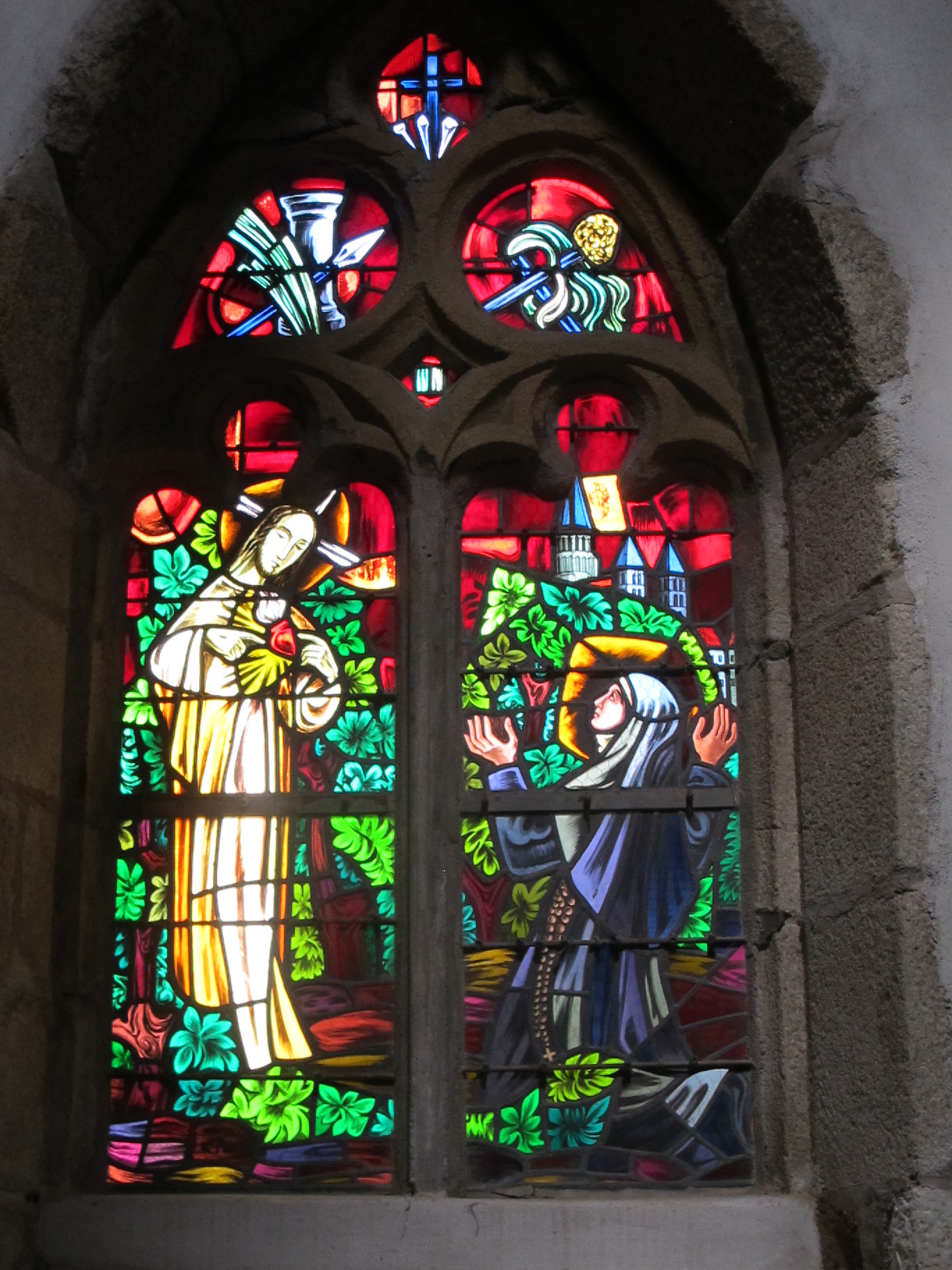 Verrière de la baie 2 (chapelle sud) : Apparition du Sacré Coeur à Marguerite-Marie Alacoque (état en 2013)Immatriculation