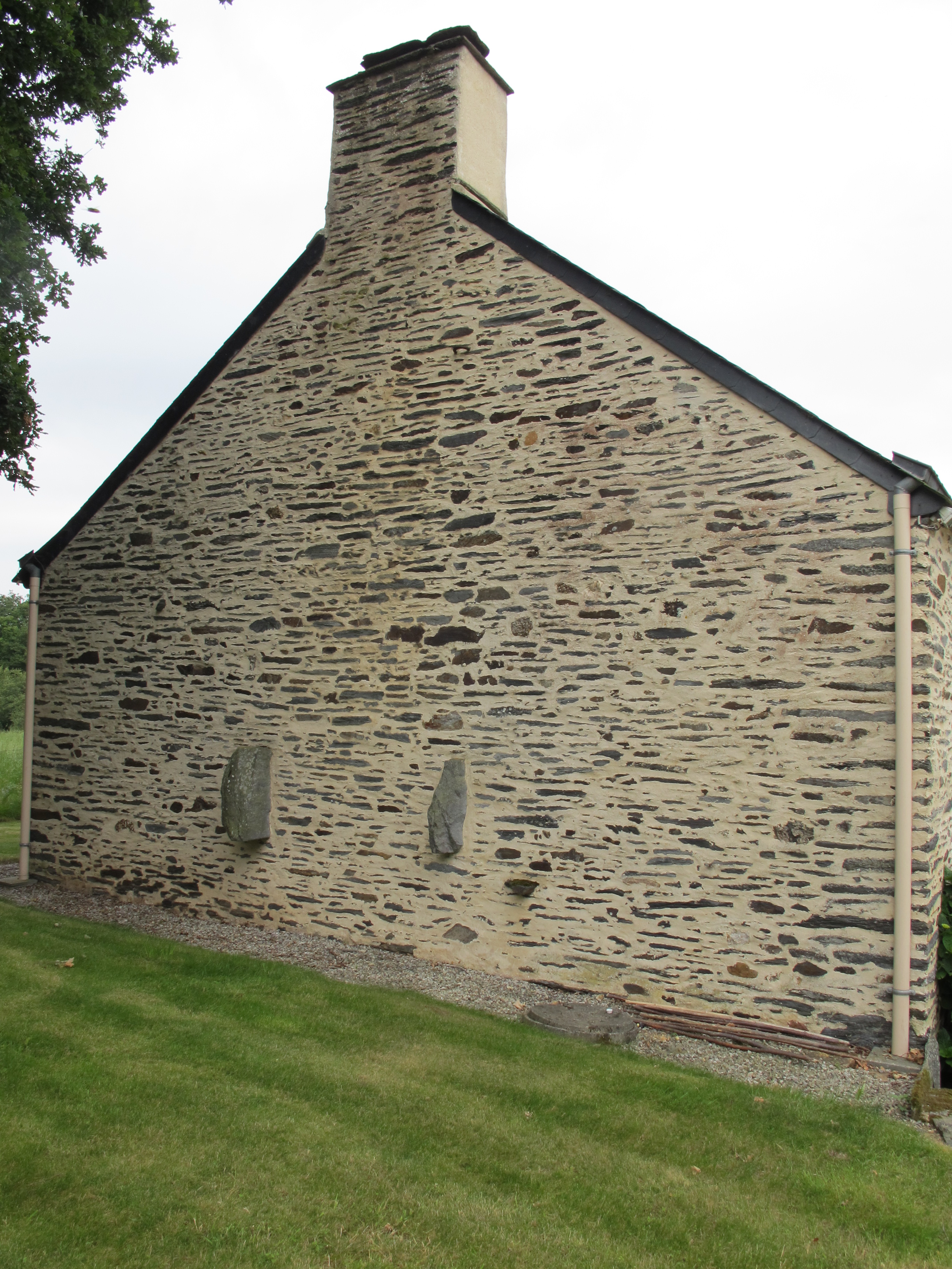 Bouin, maison 2 : mur-pignon est où se distinguent les consoles de la cheminée de schisteImmatriculation