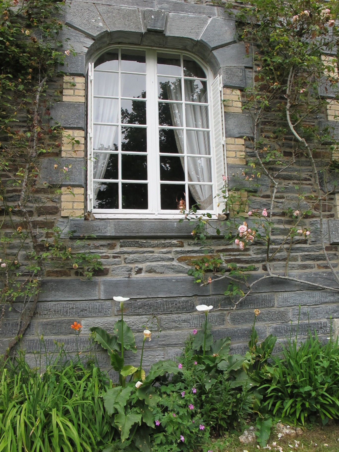 Coëtbot, maison : encadrement de la fenêtre et soubassement en pierre de taille de schiste