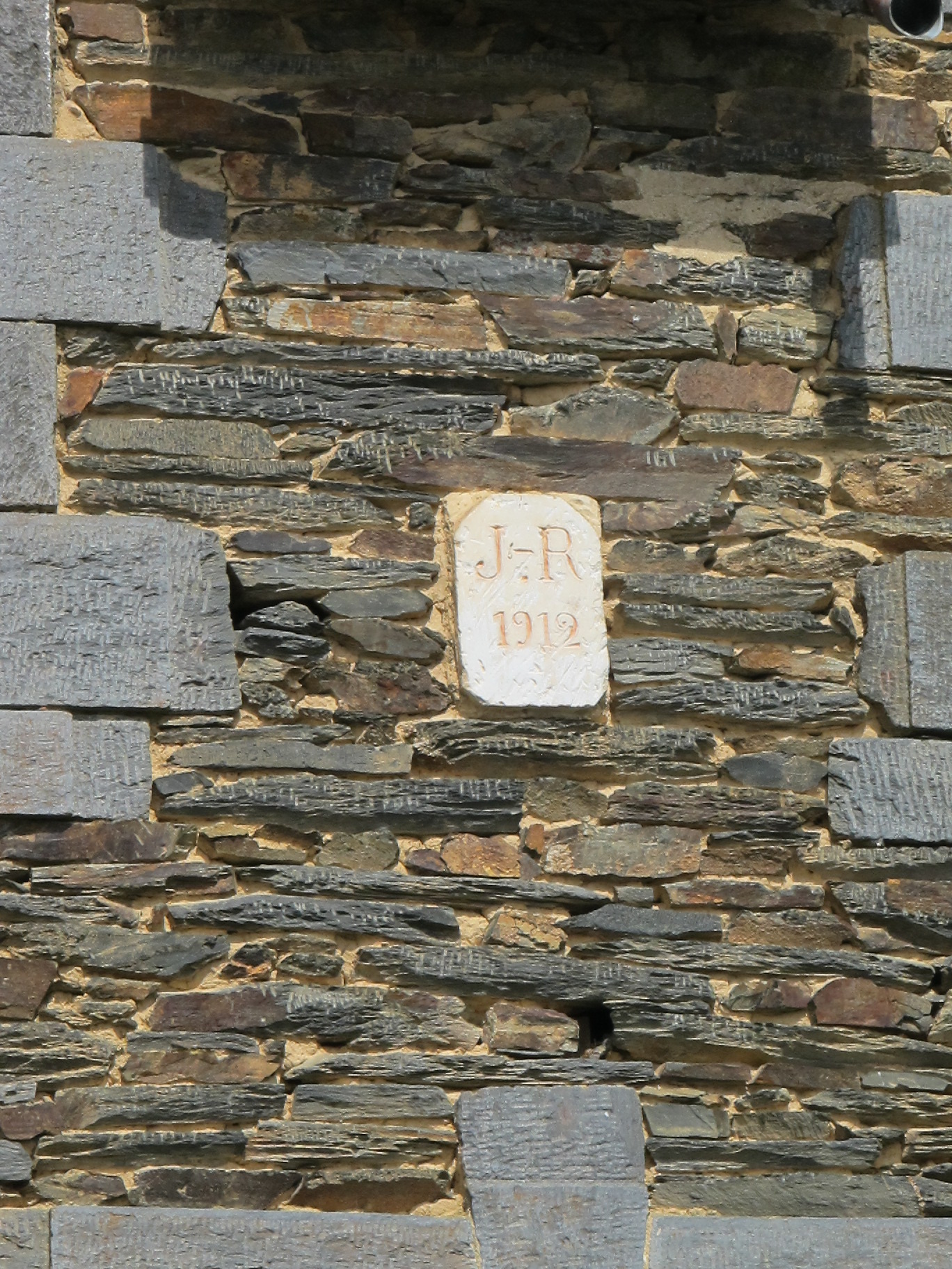 Maison 4 : pierre calcaire gravée de la date 1912 et des initiales J - RImmatriculation