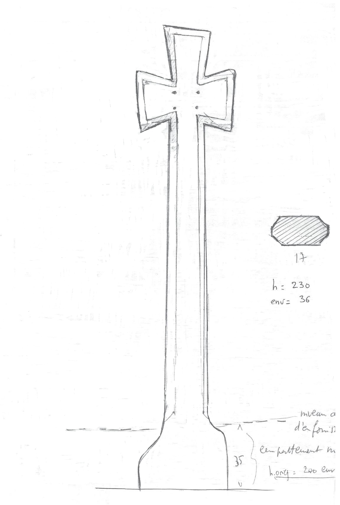 Chapelle : croix monumentale (schéma réalisé par J. P. Ducouret en 1983)Immatriculation