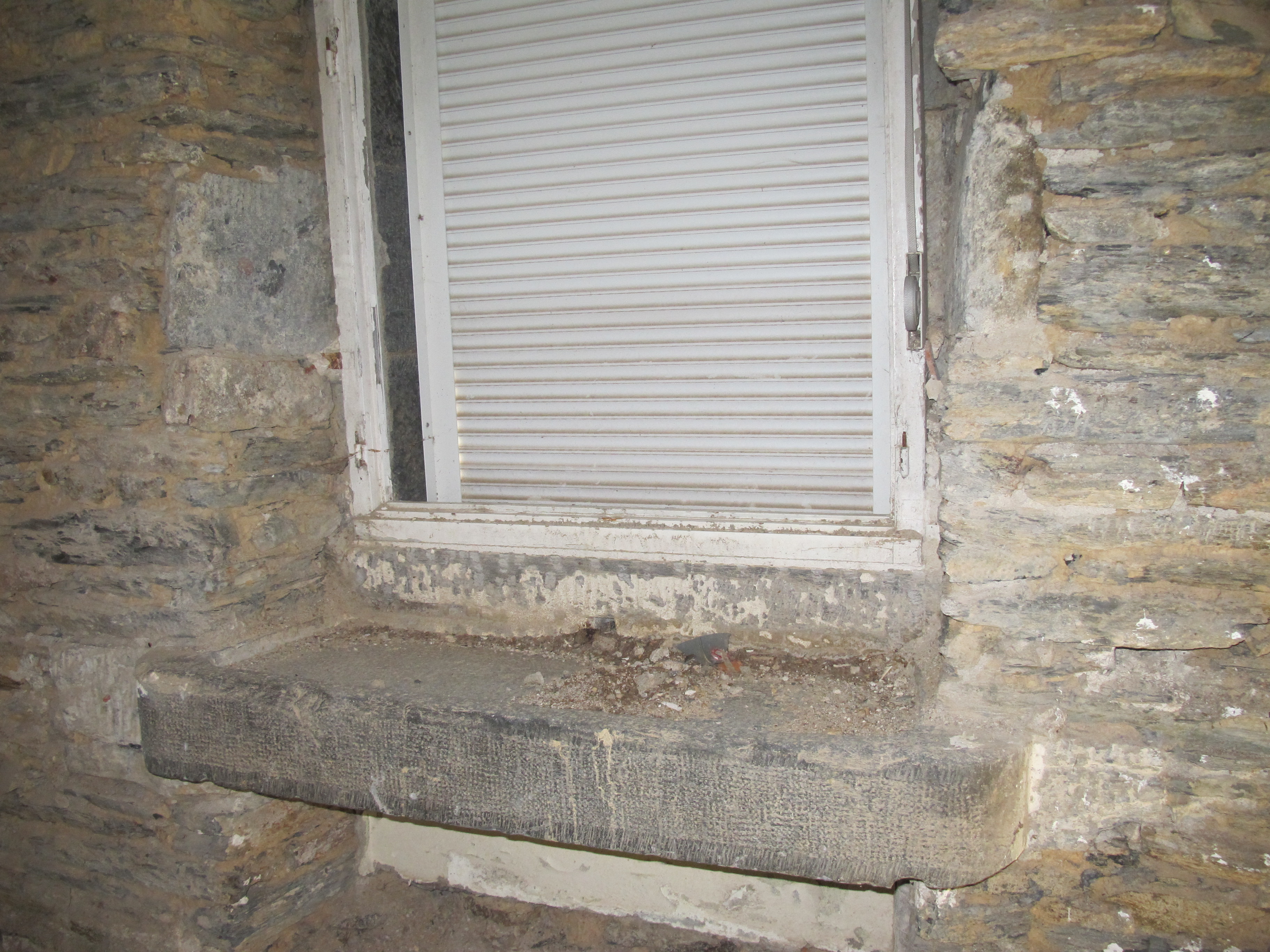 Les Rues Moisan, ferme 6 : sous la fenêtre, l'évier en schiste de la cuisine (état en 2013)Immatriculation