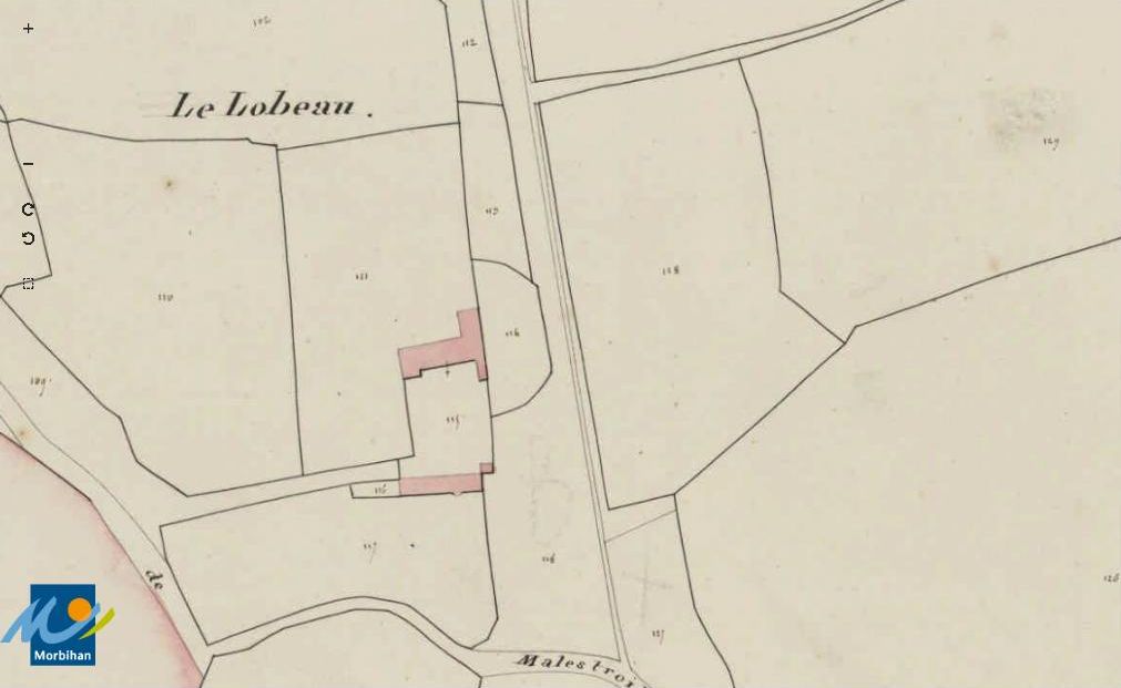 Le manoir du Lobeau sur le cadastre de 1829 (A. D. du Morbihan, 3 P 75/8)Immatriculation