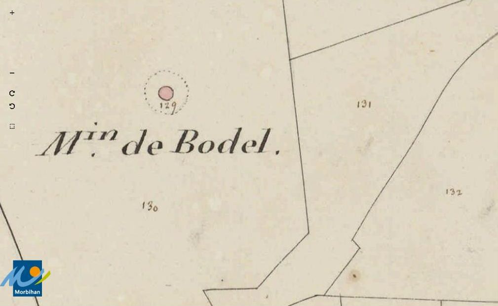 Le moulin à vent de Bodel sur le cadastre de 1829 (A. D. du Morbihan, 3 P 75/22)Immatriculation
