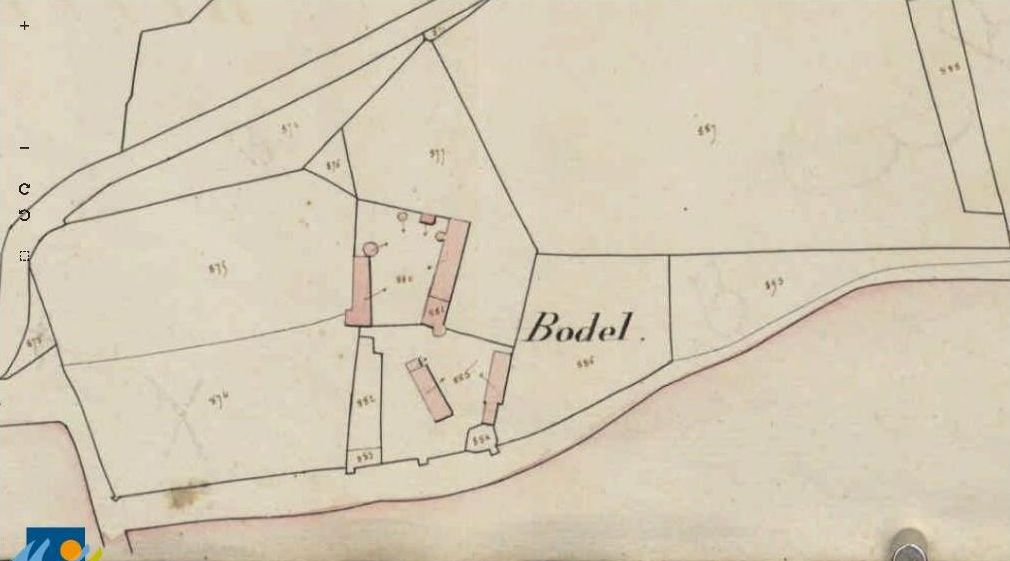 Le manoir de Bodel sur le cadastre de 1829 (A. D. du Morbihan, 3 P 75/23)Immatriculation