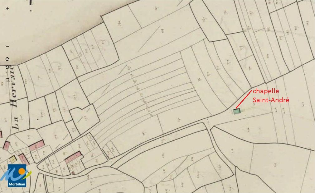 La chapelle Saint-André sur le cadastre de 1829 (A. D. du Morbihan, 3 P 244/3)Immatriculation