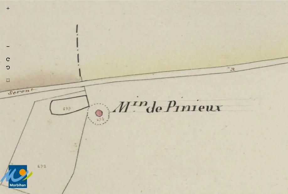 Le moulin à vent de Pinieux sur le cadastre de 1829 (A. D. du Morbihan, série 3 P 286/33)Immatriculation
