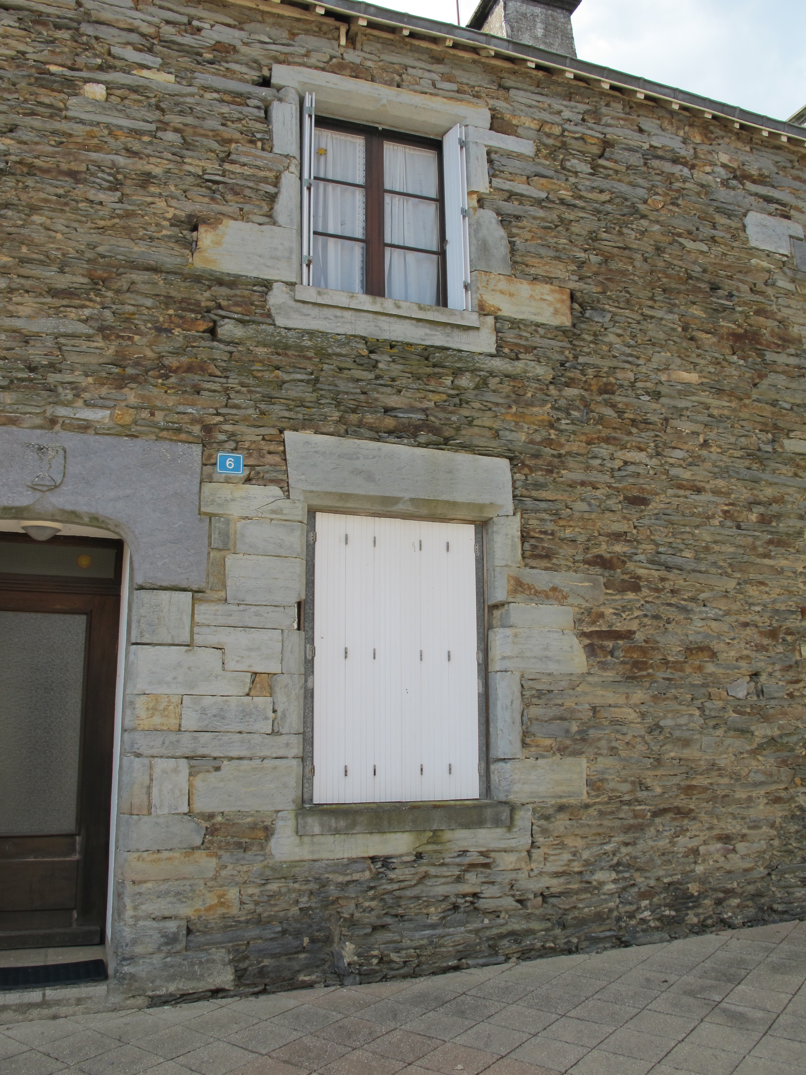 6, Place de la Motte, presbytère aujourd'hui maison : la travée de fenêtres à droite de la porte ; elles ont perdu toutes deux la traverse et le meneau qui formaient croisillon (état en 2013)Immatriculation