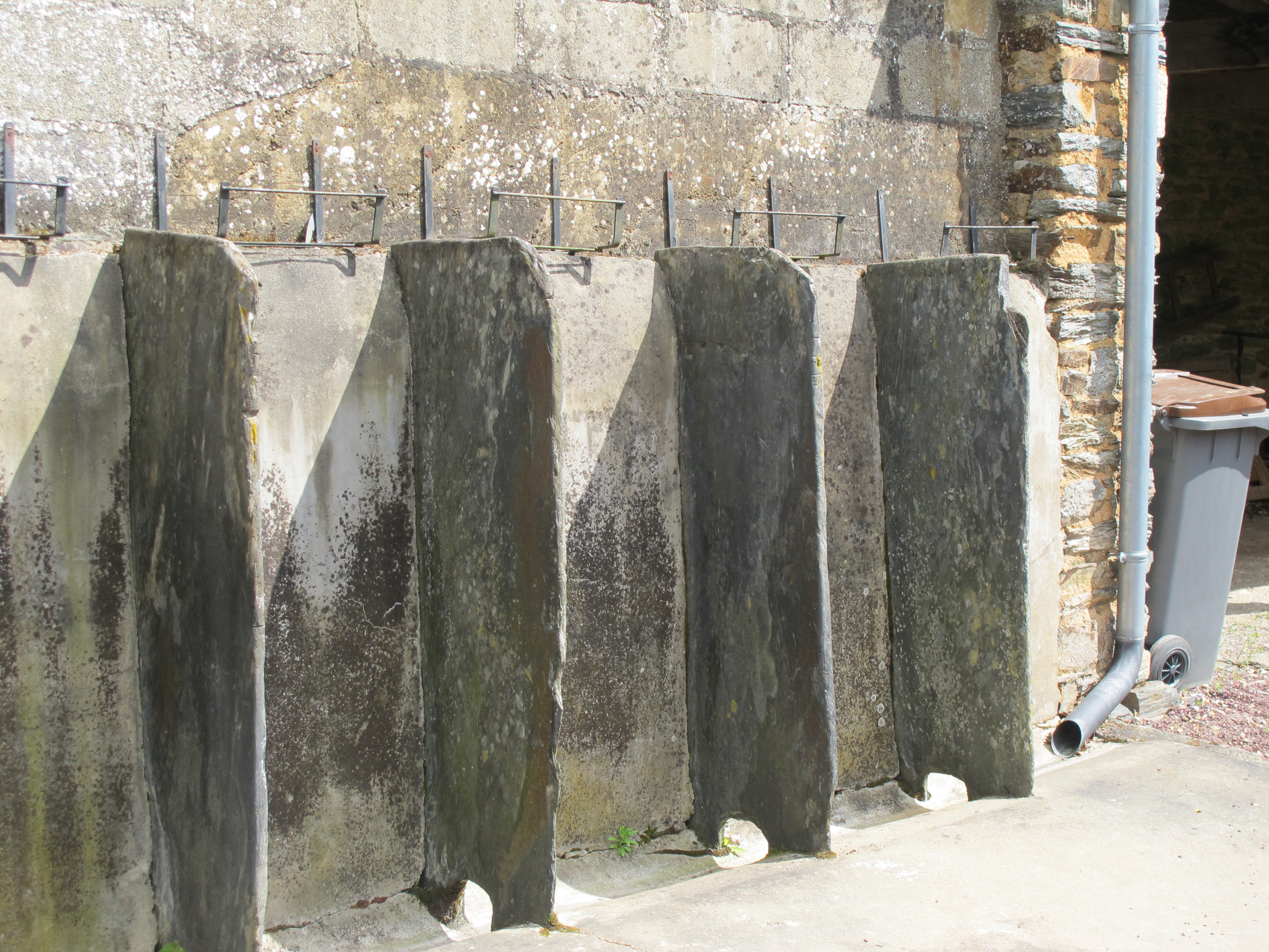 4, avenue de la Libération, salle paroissiale et école, aujourd'hui maison : les urinoirs de l'école, en lames de schiste (état en 2013)Immatriculation