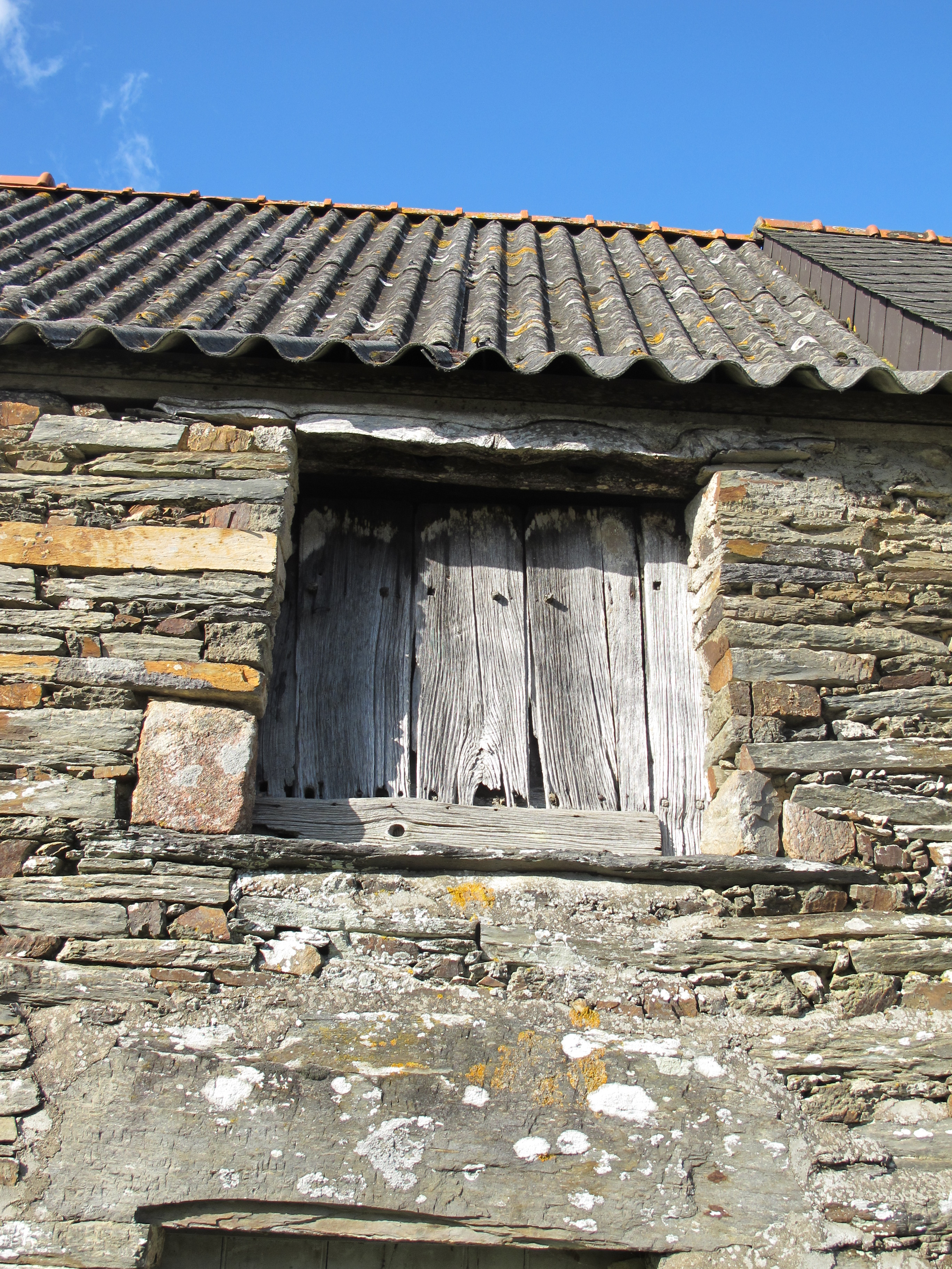 La Rotière, ferme : la fenêtre incluse sous le toit, à linteau de bois et appui en schiste (état en 2013)Immatriculation