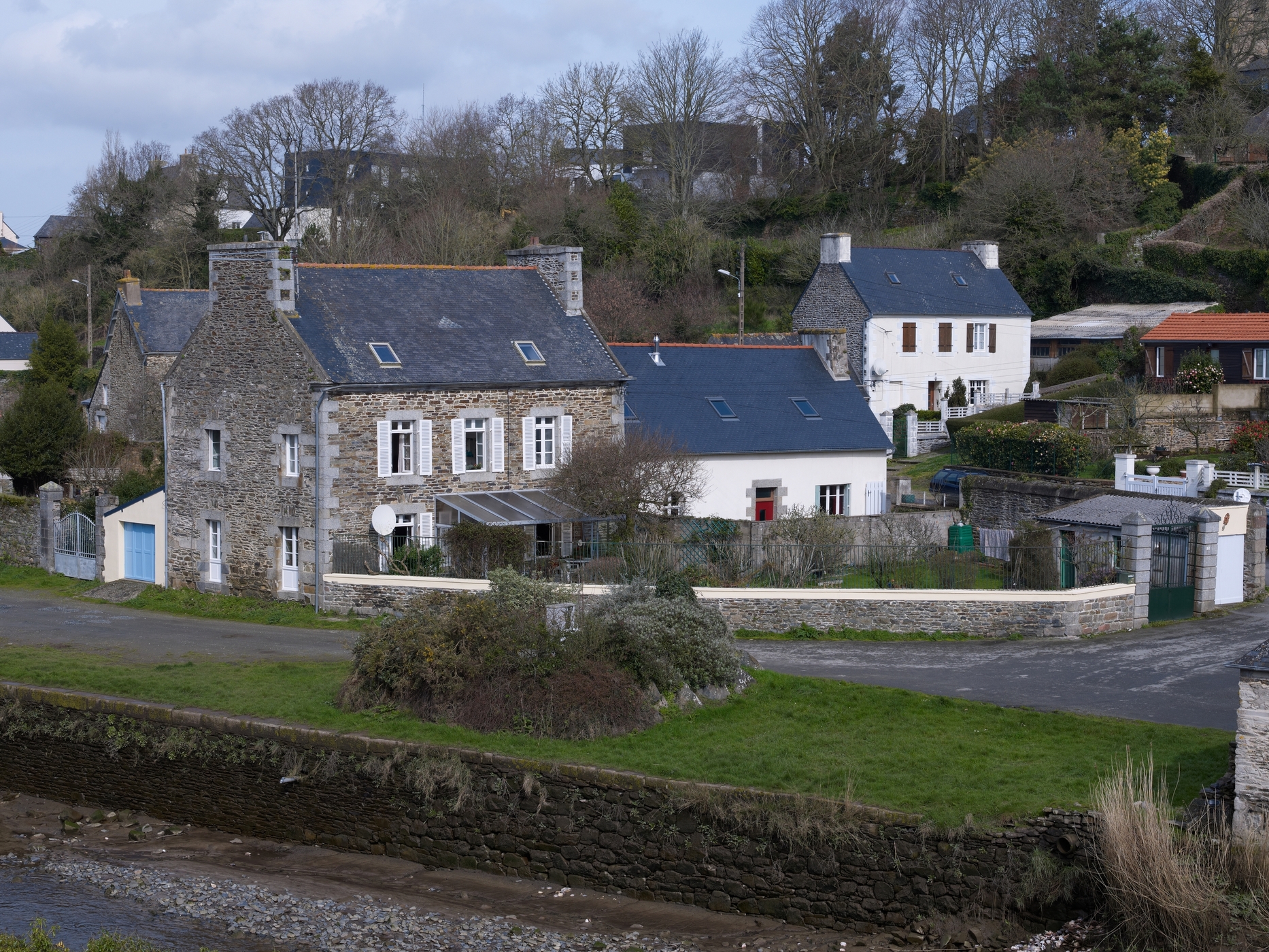 Ancien port de La Roche-Derrien en aval du vieux pont et du moulin. Vue générale sudImmatriculation