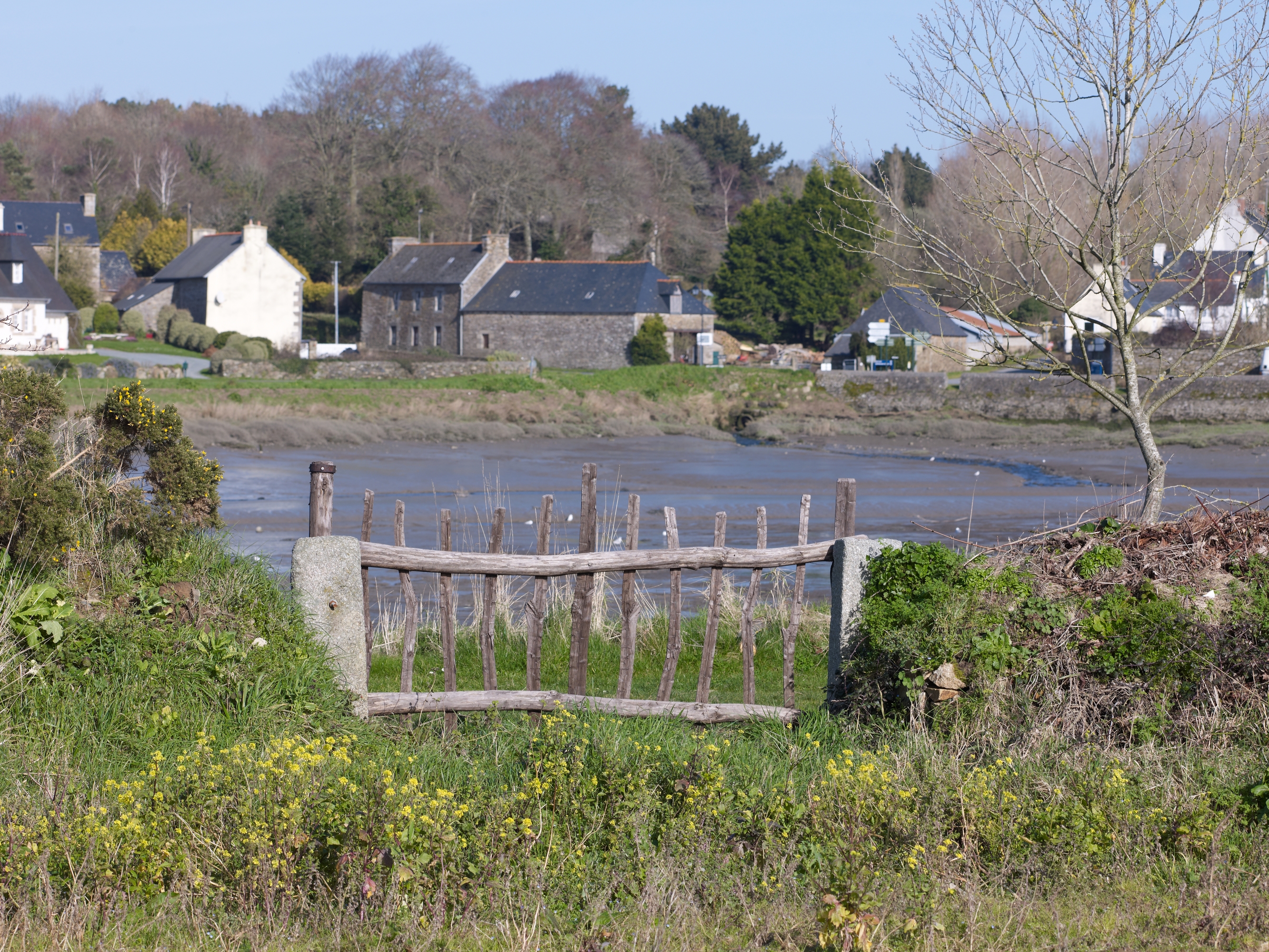 Entrée de champ et barrière au bord de l'estuaire du JaudyImmatriculation