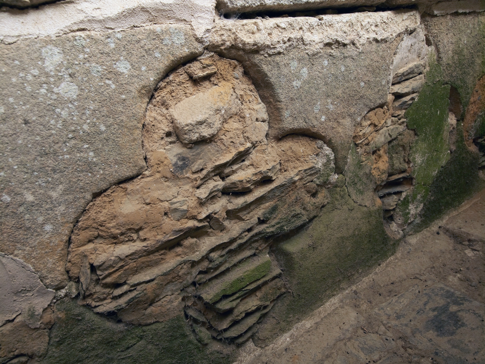 Revers de l'ancienne tribune dissimulée par le buffet d'orgue. Détail d'un quadrilobe bouchéImmatriculation