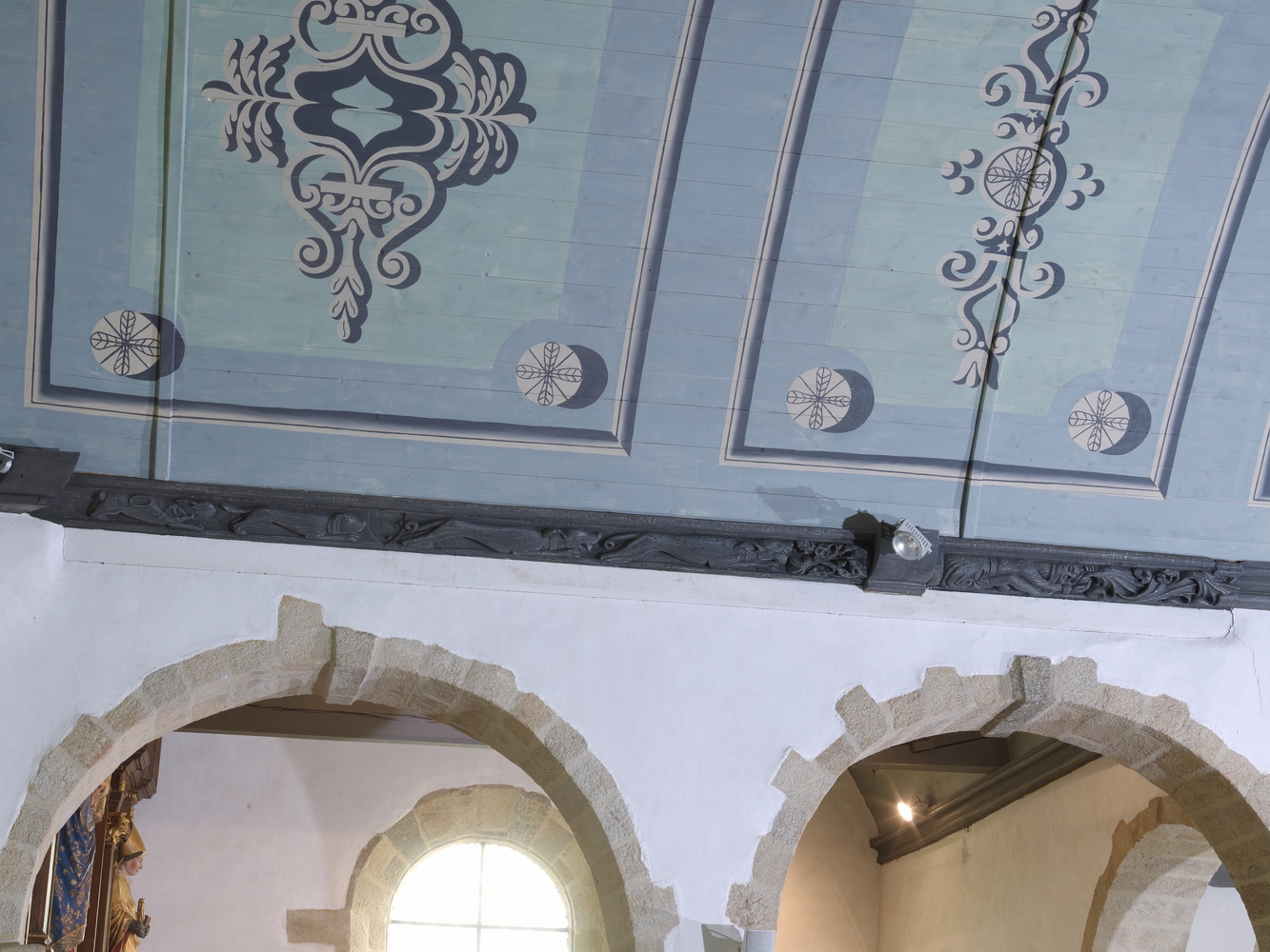 Plufur, le bourg : église paroissiale Saint-Florent, voûte lambrissée peinte et sablière sculptéeImmatriculation