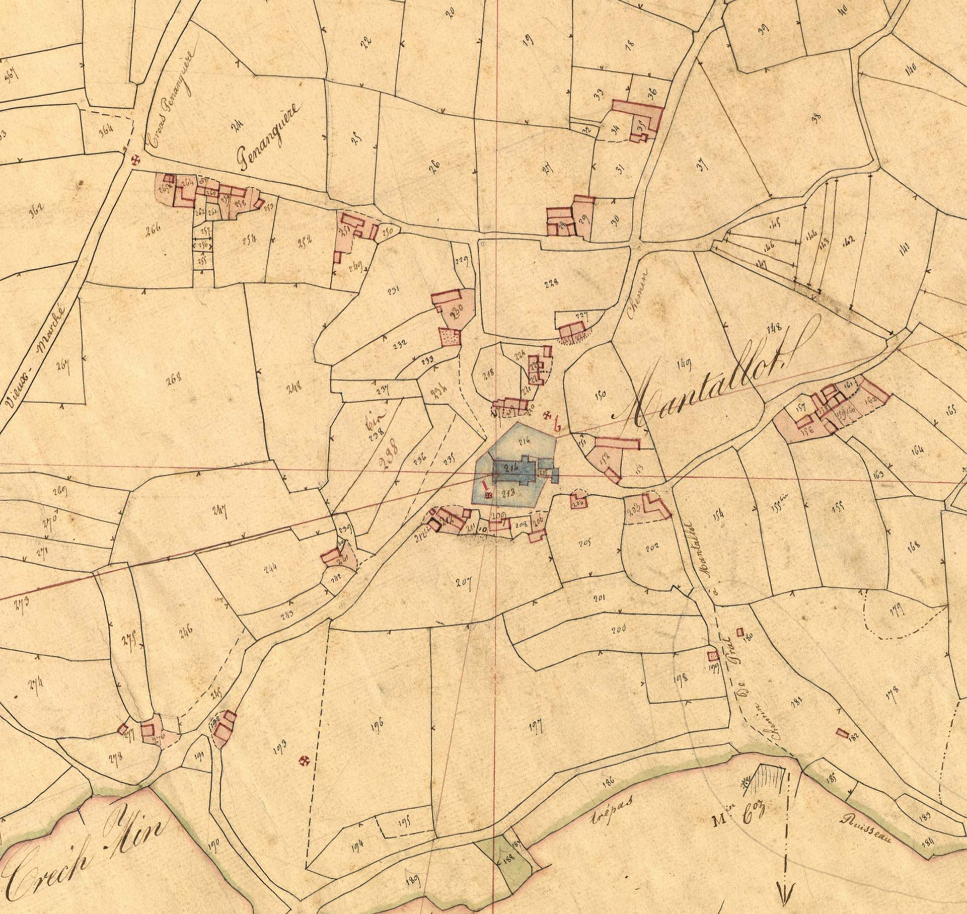 Extrait du cadastre ancien de la commune de Mantallot, 1835 : le bourgImmatriculation
