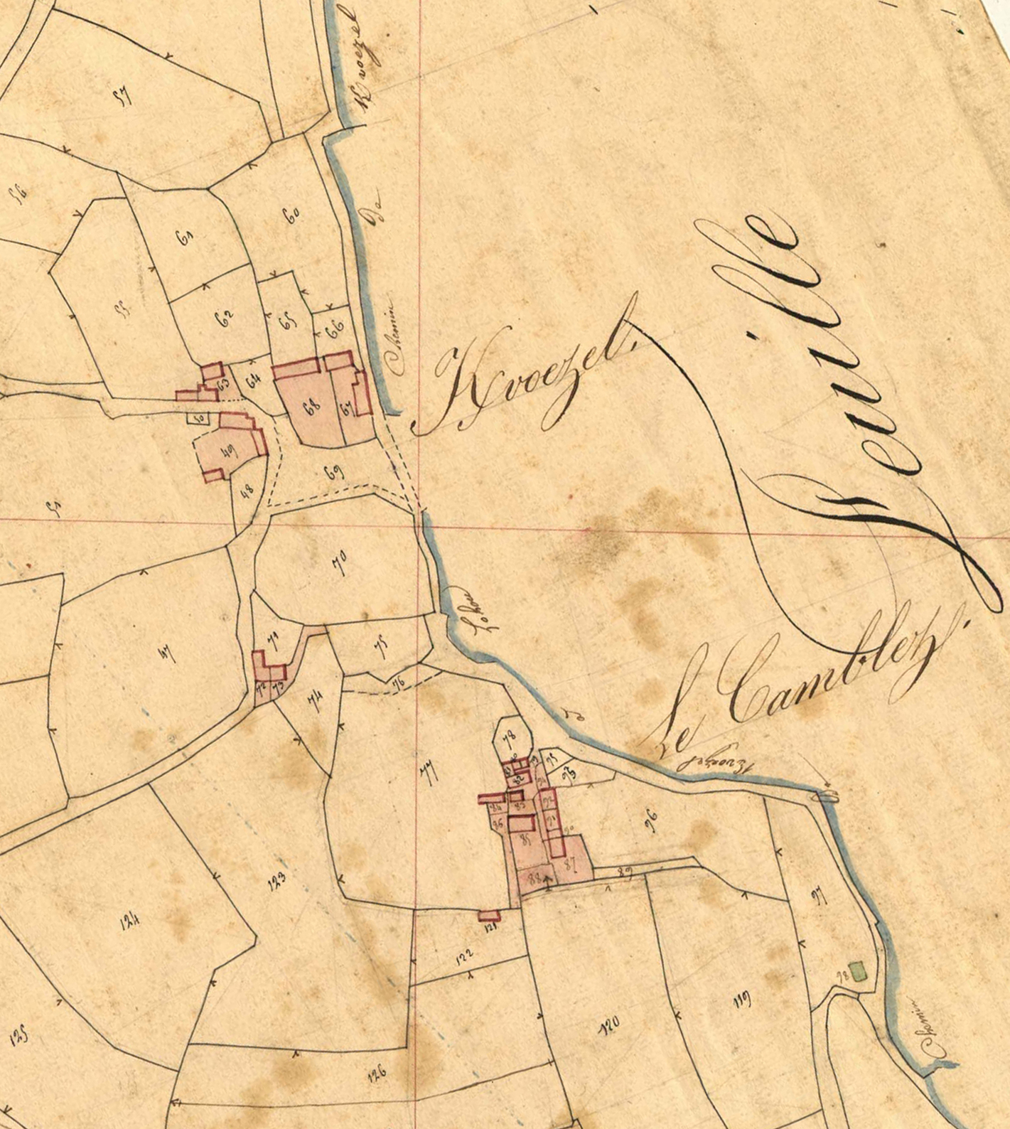 Extrait du cadastre ancien de la commune de Mantallot, 1835 : Kervoëzel, Le Camblez [Camblec]Immatriculation