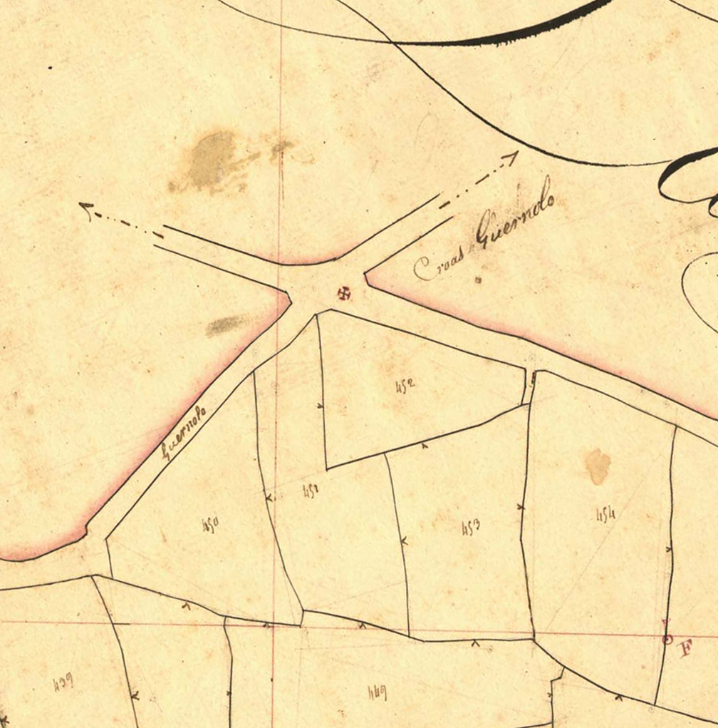 Extrait du cadastre ancien de la commune de Mantallot, 1835 : Croas Guernolo (croix aujourd'hui disparue)Immatriculation