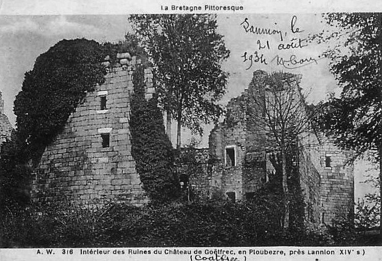 Ploubezre : château fort de Coat Frec, carte postale (collection particulière)Immatriculation