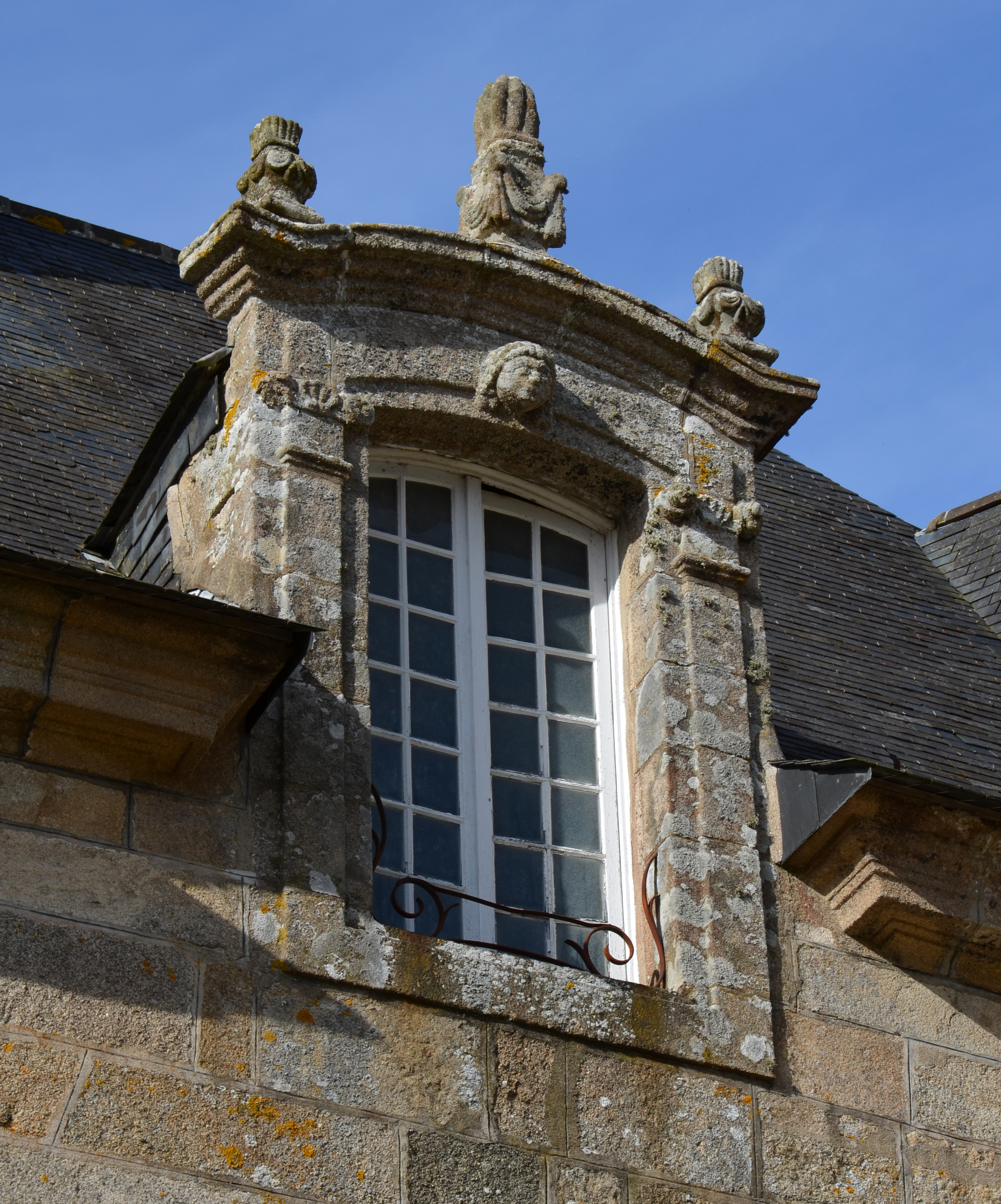 Ploubezre : château de Kergrist, vue depuis le sud, élévation à sept travées, détail d'une des lucarnesImmatriculation