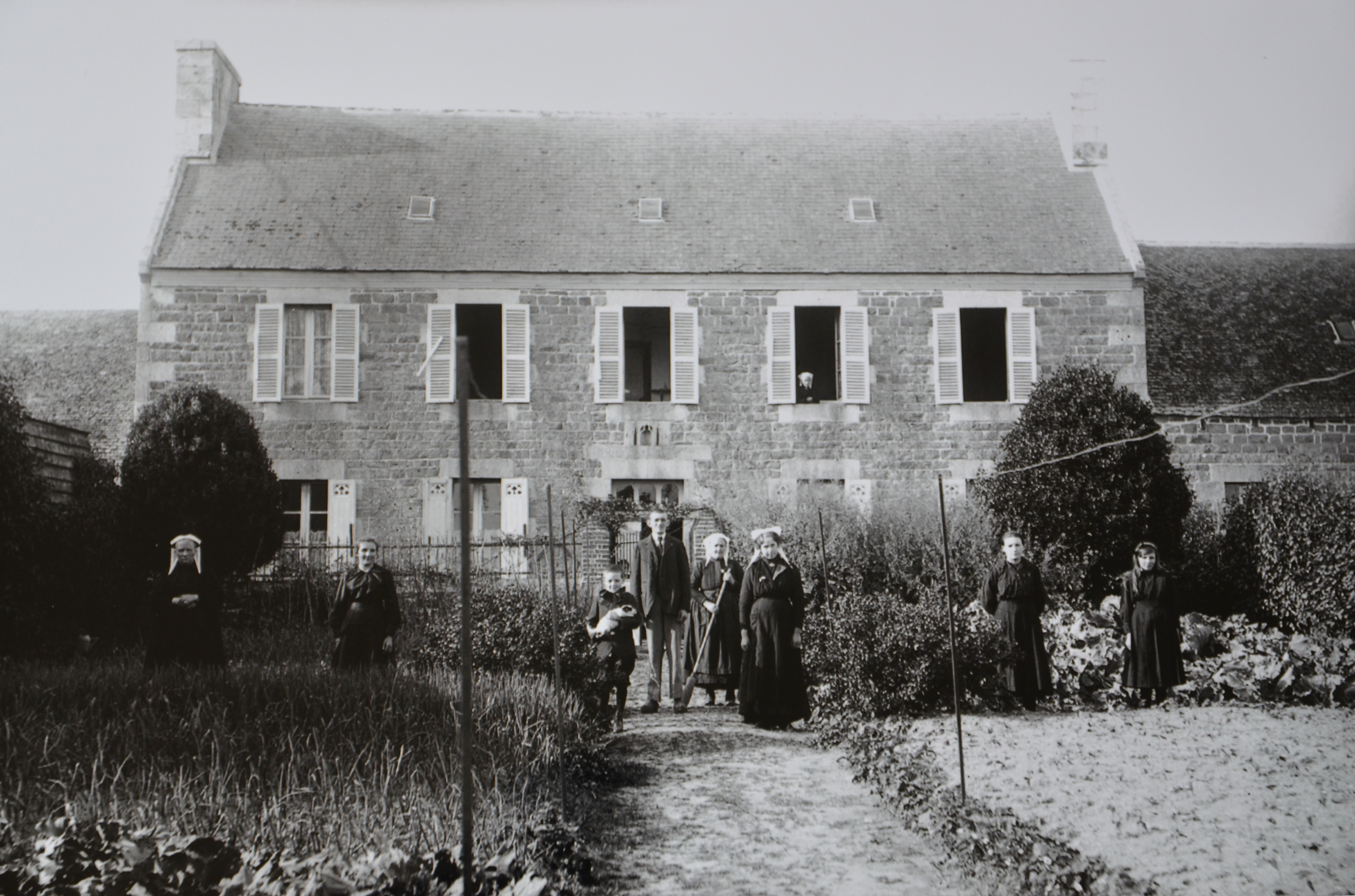 Ploubezre, Le Guirec (au nord), Guerjillès [Guergillès] : logis de ferme daté par millésime de 1883. Cette ferme a appartenu à la famille de Jean Le Parquer (présent sur la photographie), collection projet le Vélo-photo de madame YvonneImmatriculation