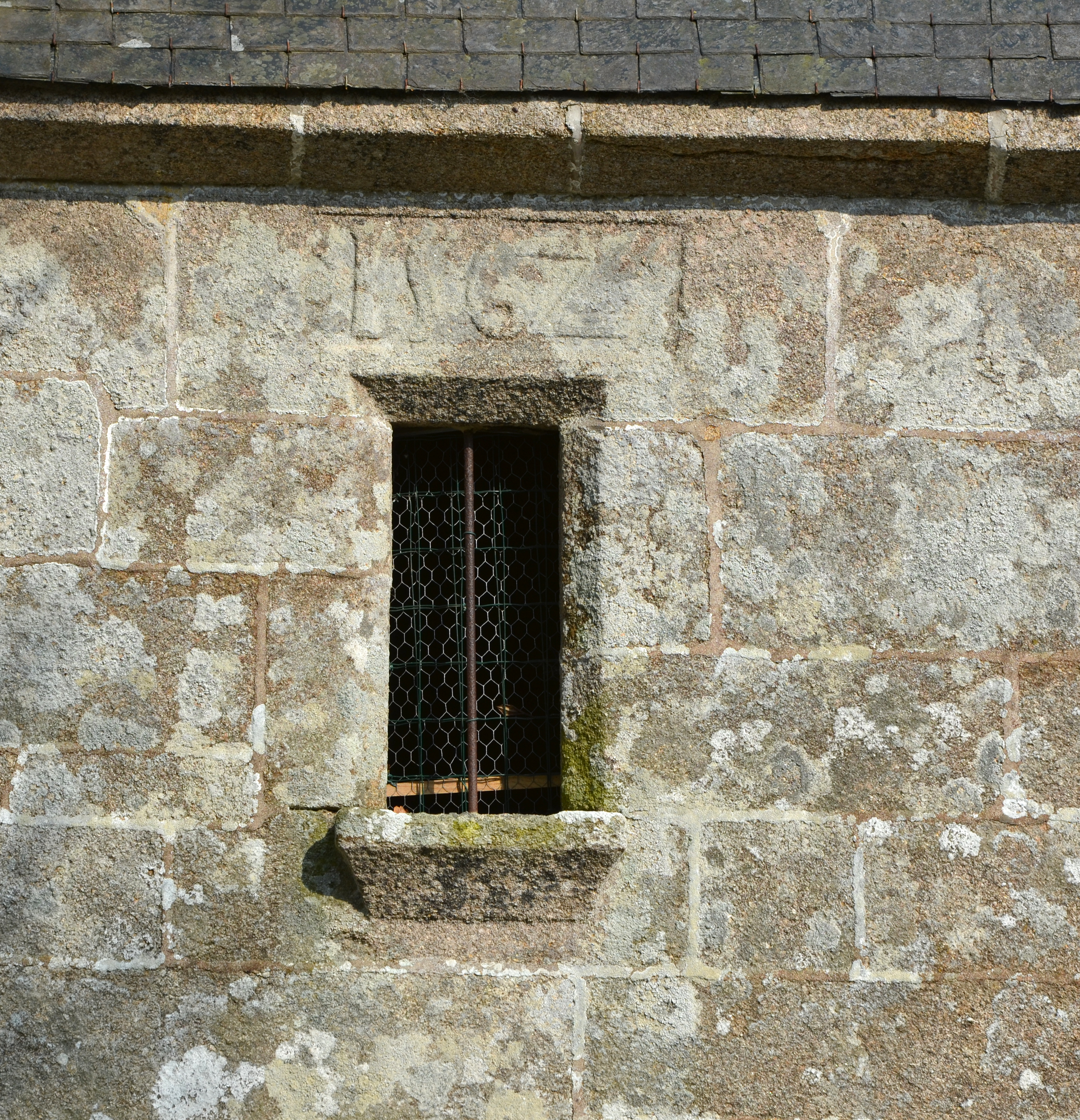 Ploubezre, Runfao : chapelle Saint-Fiacre, détail de la fenêtre de la sacristie/secrétairerie datée de 1567Immatriculation