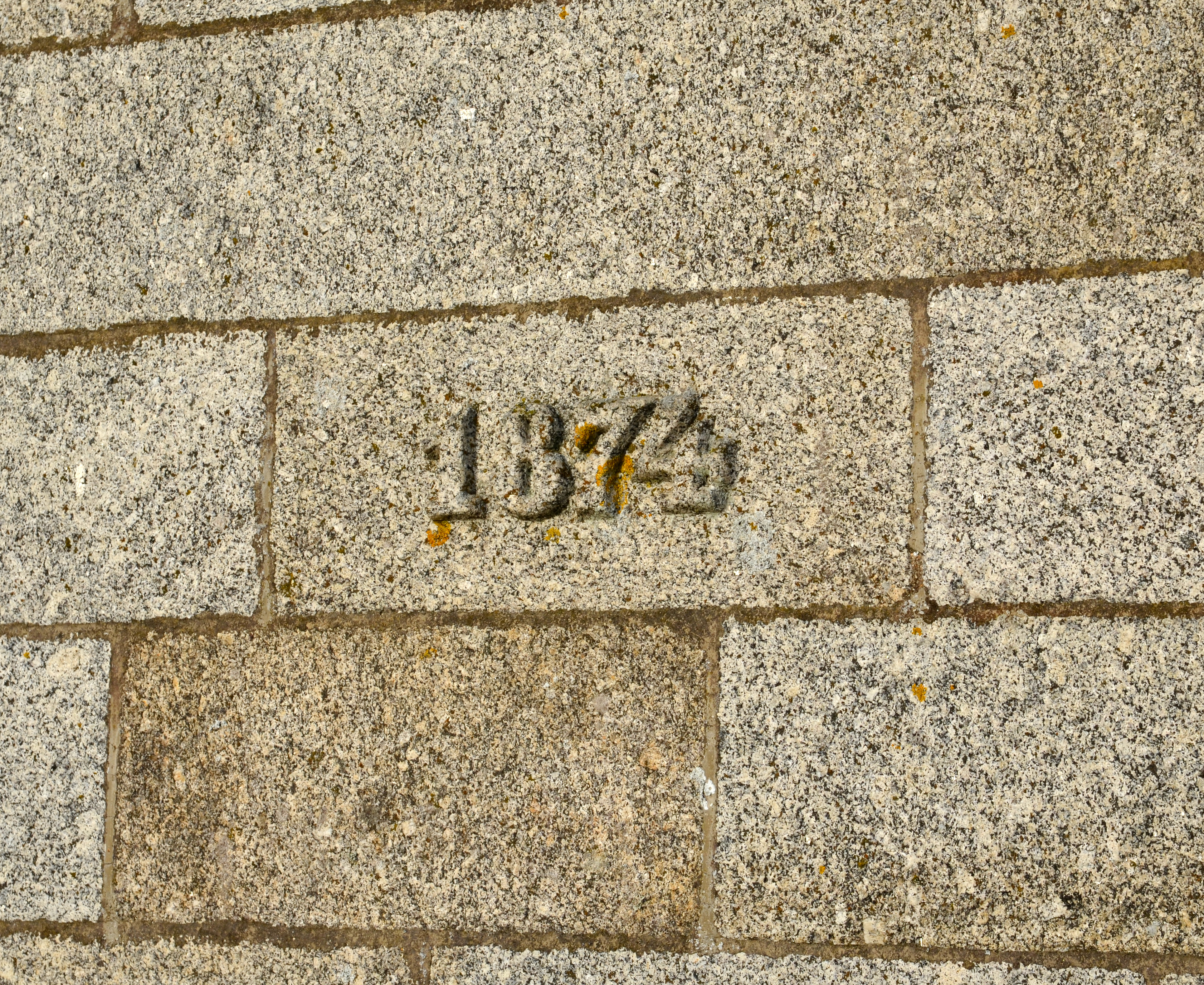 Ploubezre, le bourg : église paroissiale Saint-Pierre, millésime 1874 du chevetImmatriculation