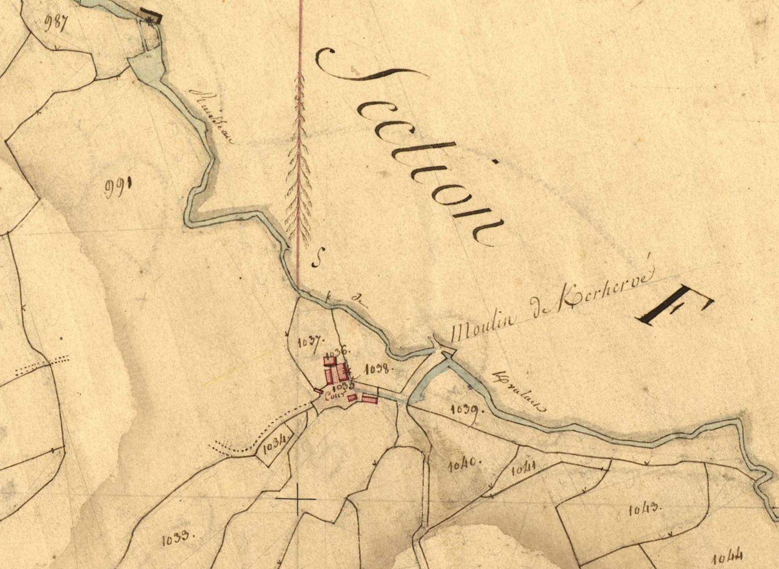 Extrait du cadastre ancien de la commune de Ploubezre, 1826 : Moulin de KerhervéImmatriculation