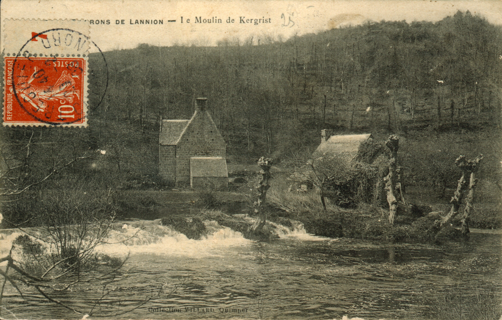 Logis et moulin à eau depuis la rive de Tonquédec, carte postale (collection particulière)