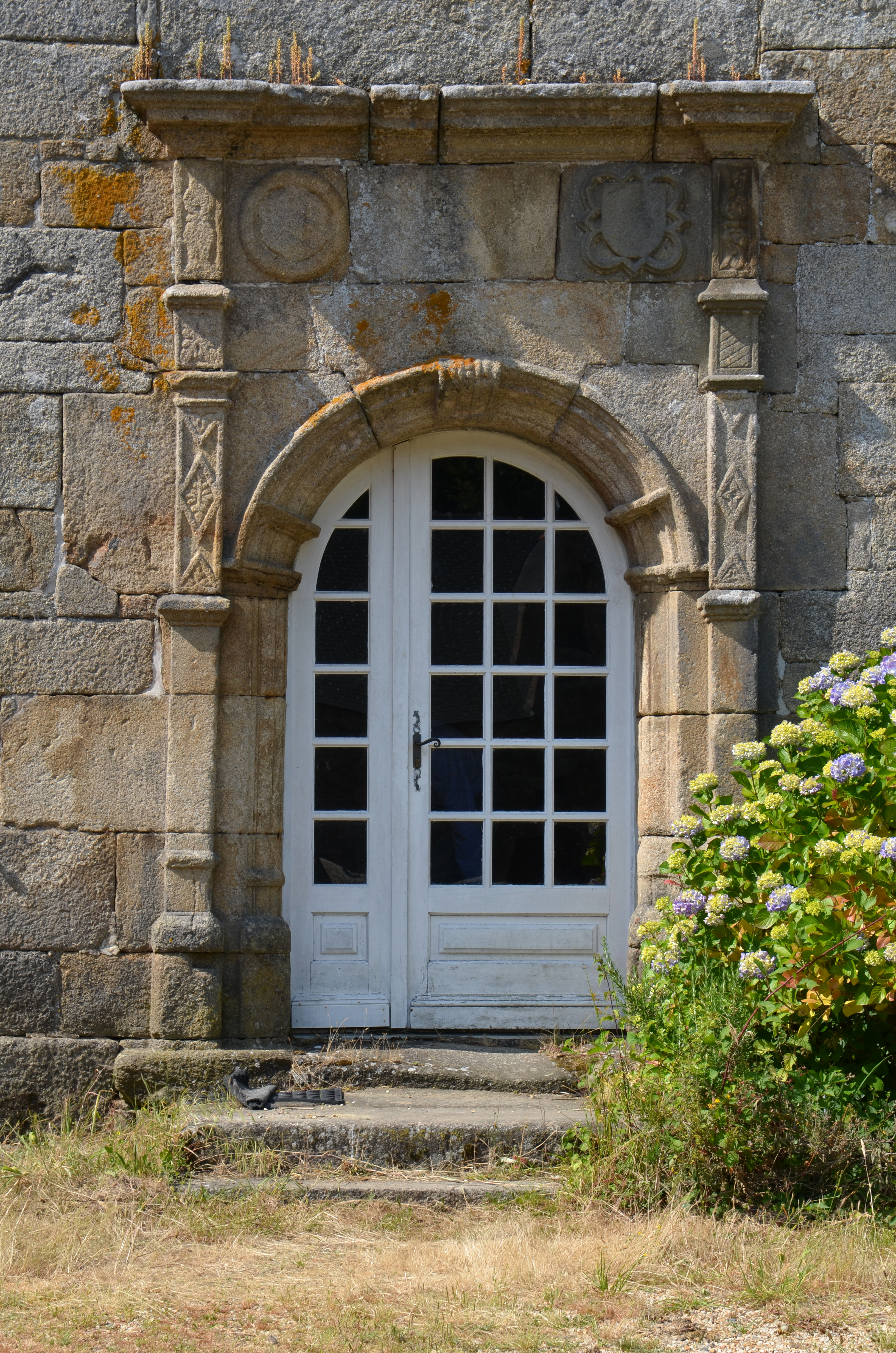 Plouaret, Kerbridou : manoir, élévation antérieure orientée vers le sud, porte ornée de style RenaissanceImmatriculation