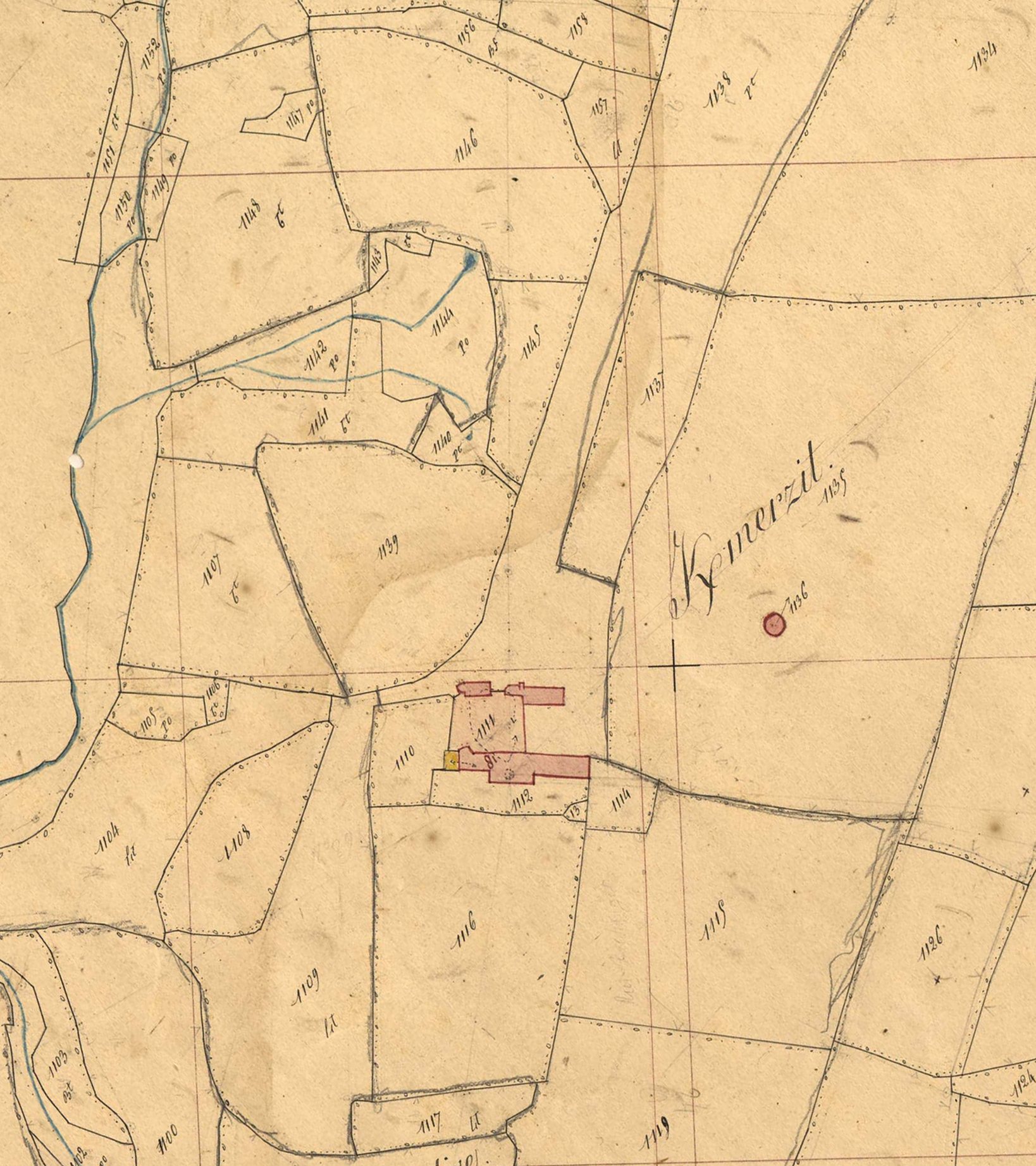 Extrait du cadastre ancien de la commune de Trémel, 1848 : manoir de Kermerzit et son colombierImmatriculation