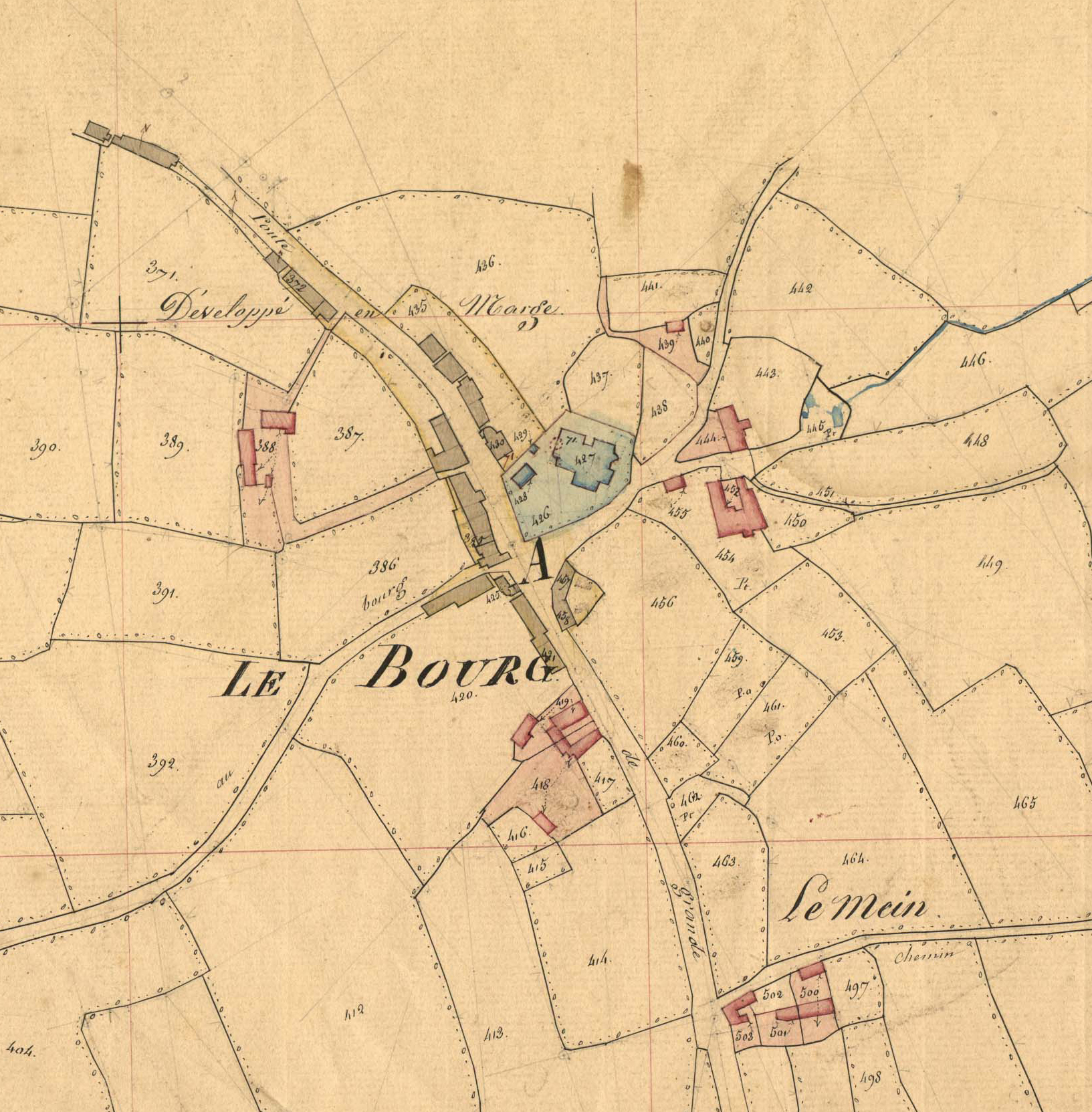 Extrait du cadastre ancien de la commune de Trémel, 1848 : le bourg (l'église et son ossuaire - aujourd'hui détruit, sont lavés en bleu)Immatriculation