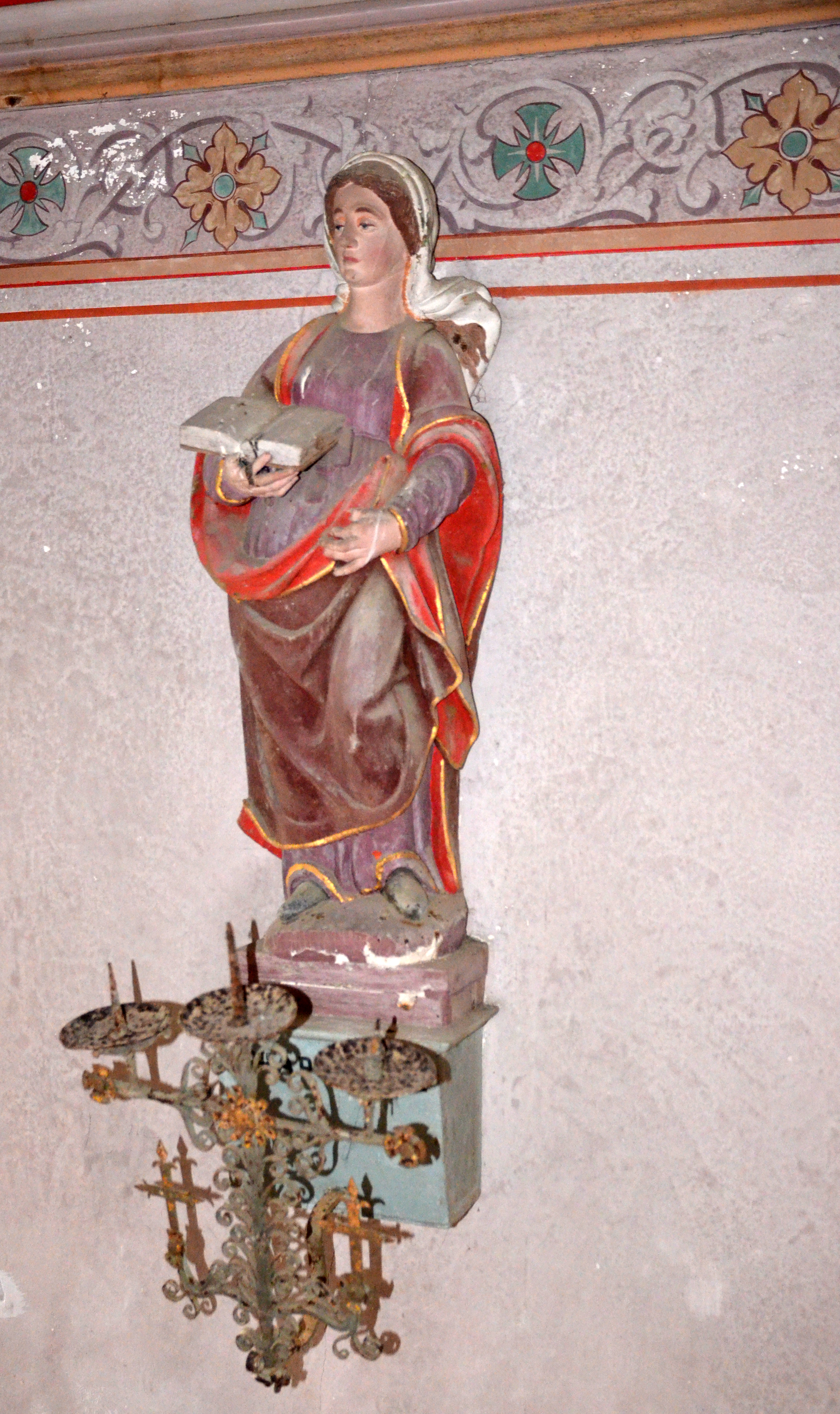 Ploubezre, Keriel : chapelle Saint-Thècle, vue intérieure, statue de Sainte ApollineImmatriculation