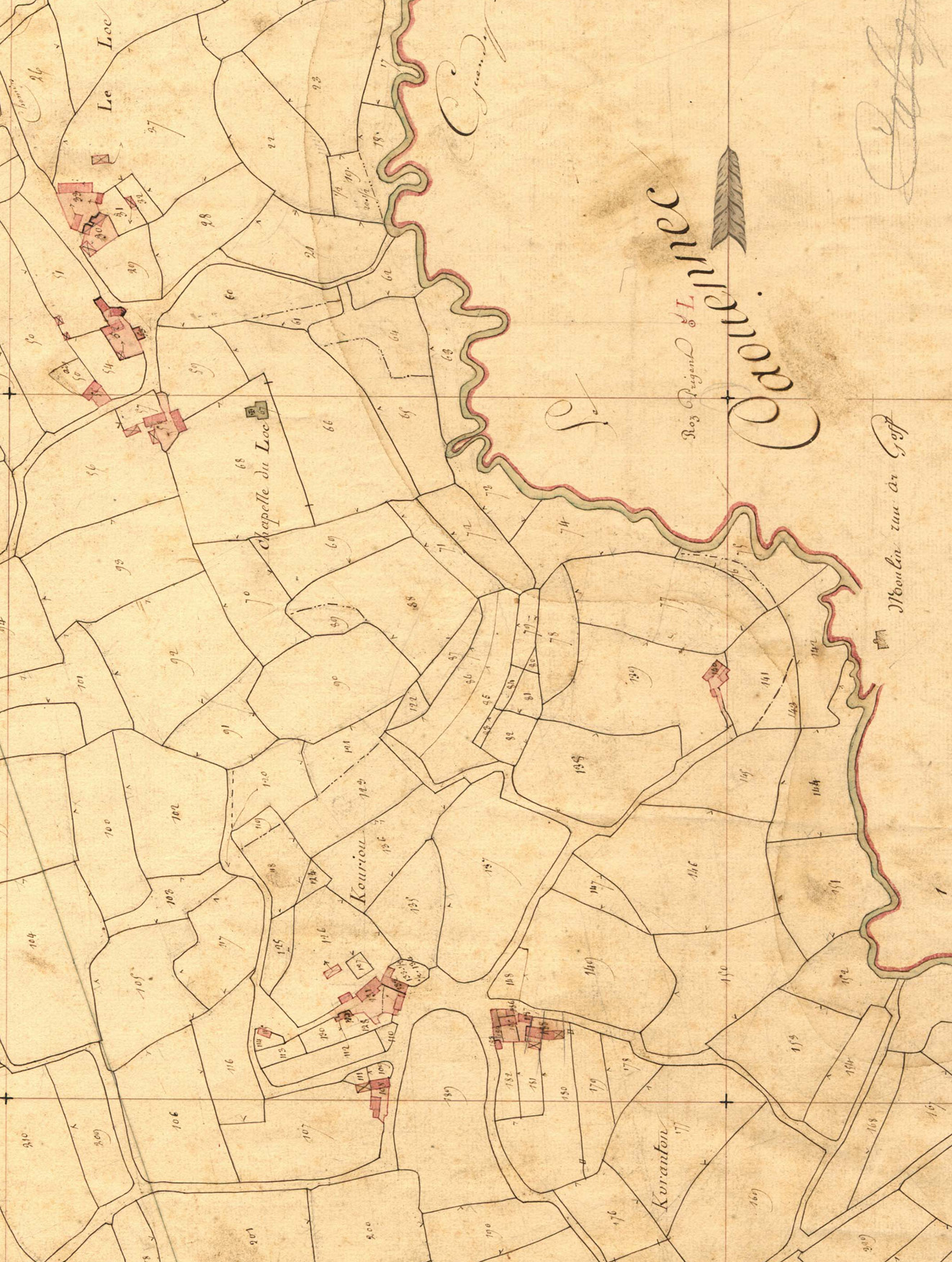 Extrait du cadastre ancien de la commune de Tonquédec, 1835 : Kerouriou (Kerboriou)Immatriculation