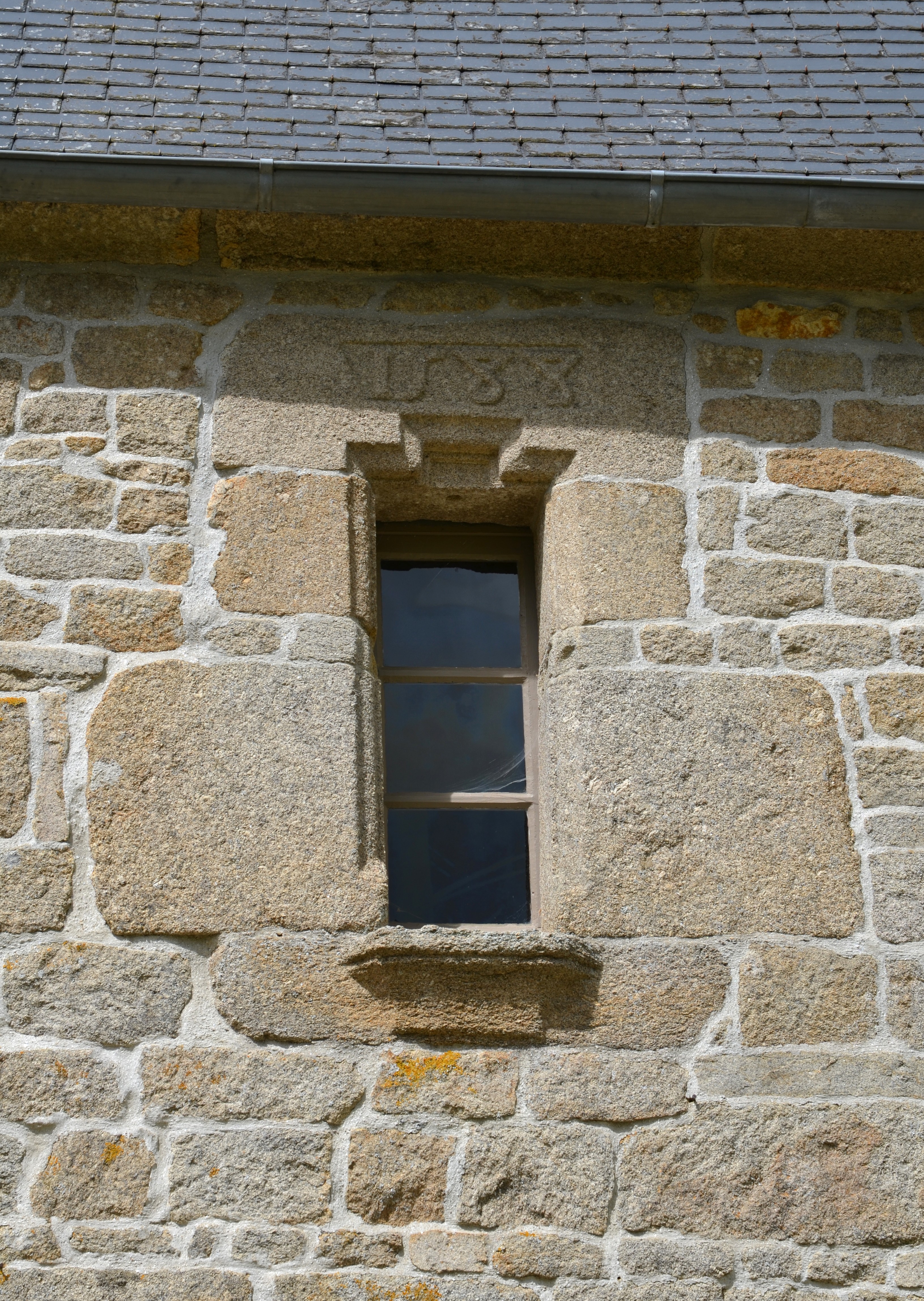 Trémel, Zan Logot : maison datée 1588, élévation antérieure orientée vers l'est-sud-est, détail de la baie datée 1588 (la traverse a été brisé)Immatriculation