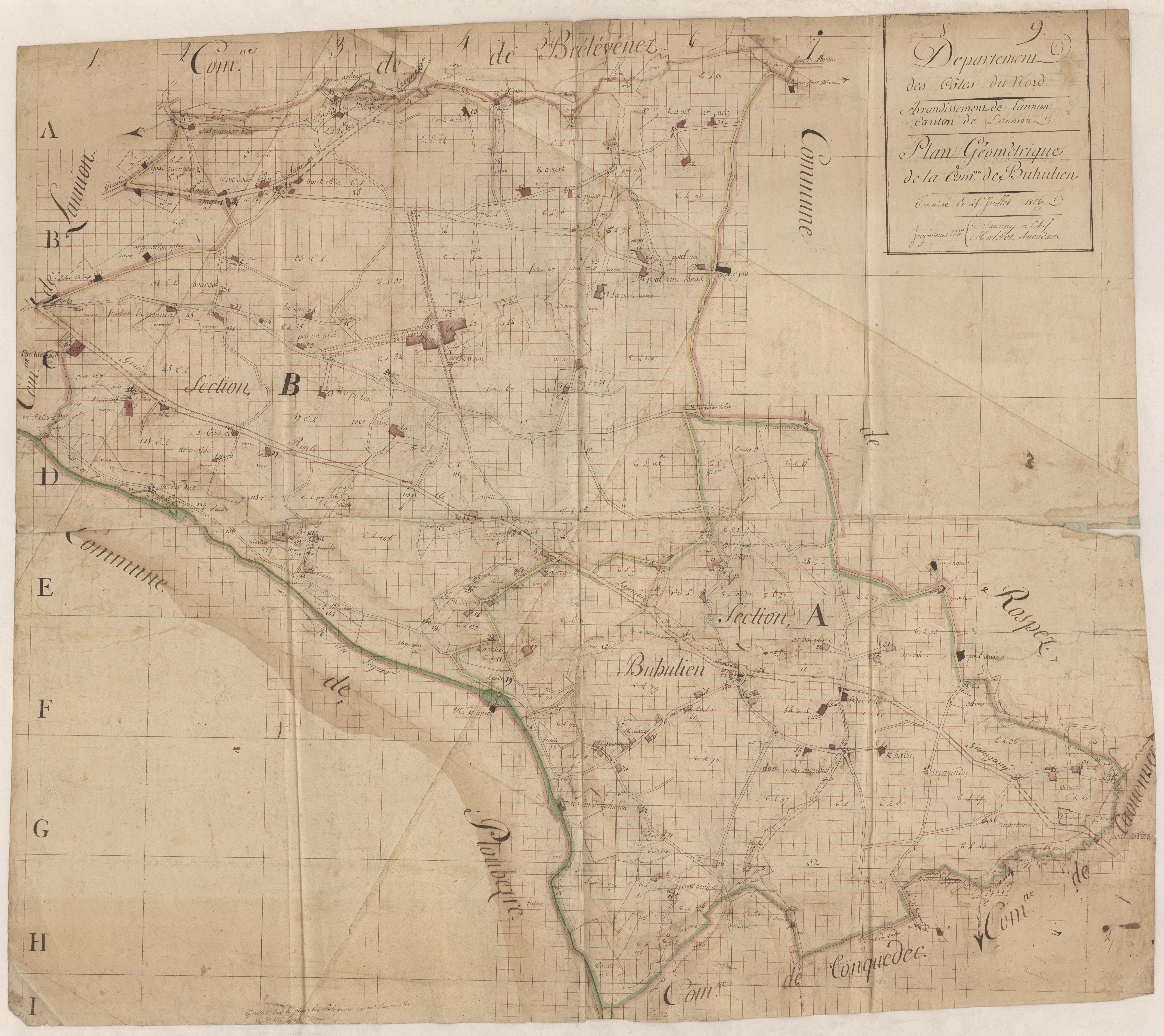 Plan géométrique de la commune de Buhulien, Côtes d'Armor (1806)Immatriculation