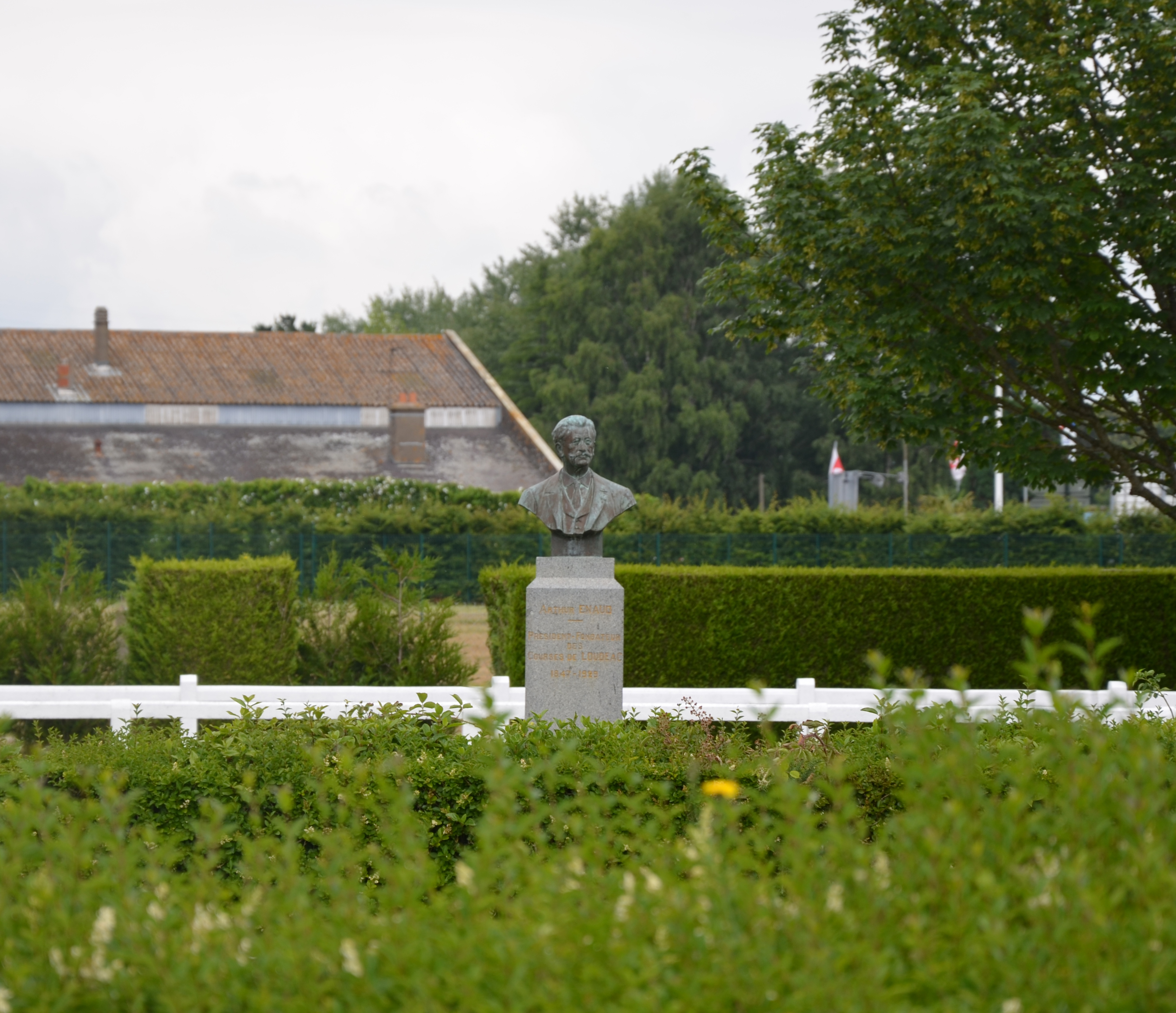 Hippodrome de Calouët, buste d'Arthur Enaud en granit par Elie Le Gogg (1930)Immatriculation