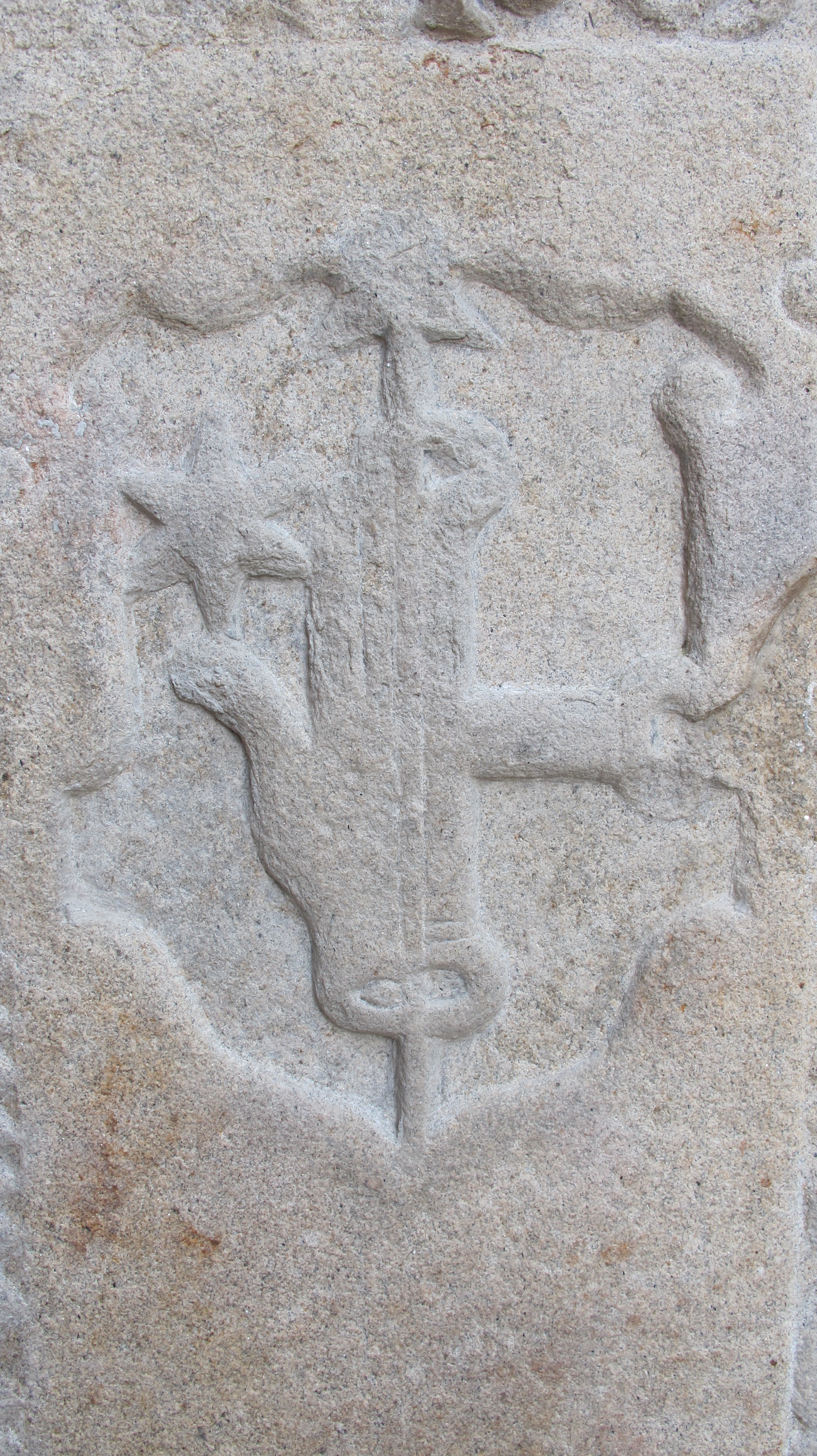 Pierre tombale, détail des armes d'alliance , familles Marot et RollandImmatriculation