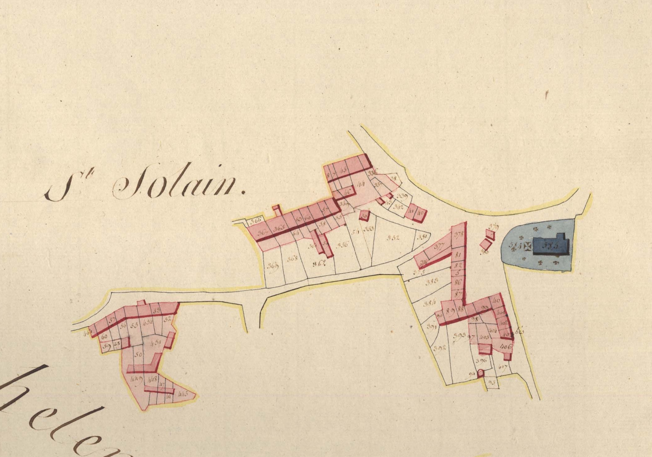 Partie développé du bourg de Saint-Solen en 1811Immatriculation
