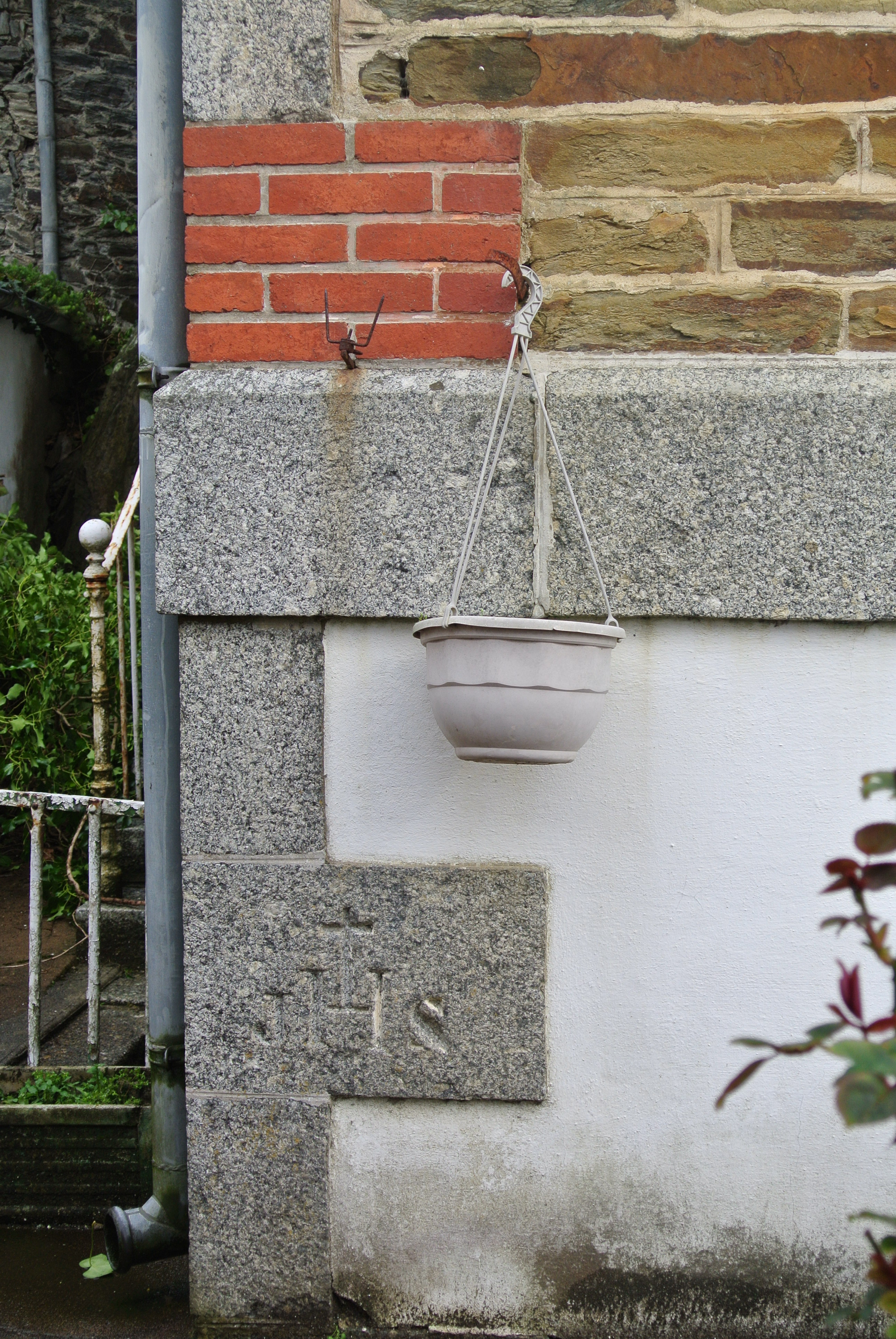Façade sud. Détail du soubassement avec symbole christique IHSImmatriculation