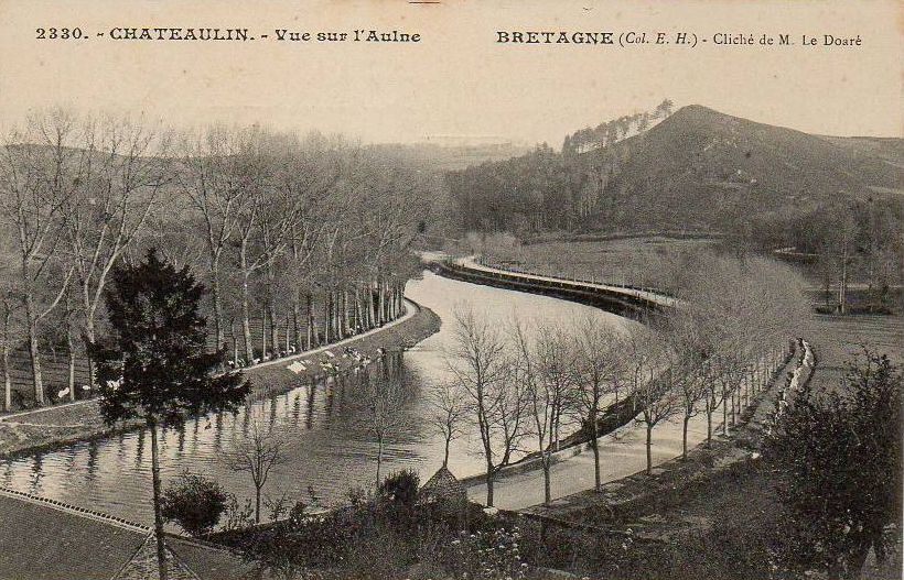 Carte postale, vue sur l'Aulne. Collec. E.H., cliché Le Doaré (avenue de Quimper depuis Notre-Dame)Immatriculation